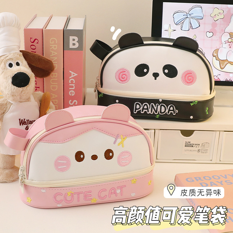 新しい大容量ブラッシュパンダ PU 鉛筆バッグ高価値かわいい漫画学生ユニバーサル文具収納ボックス卸売