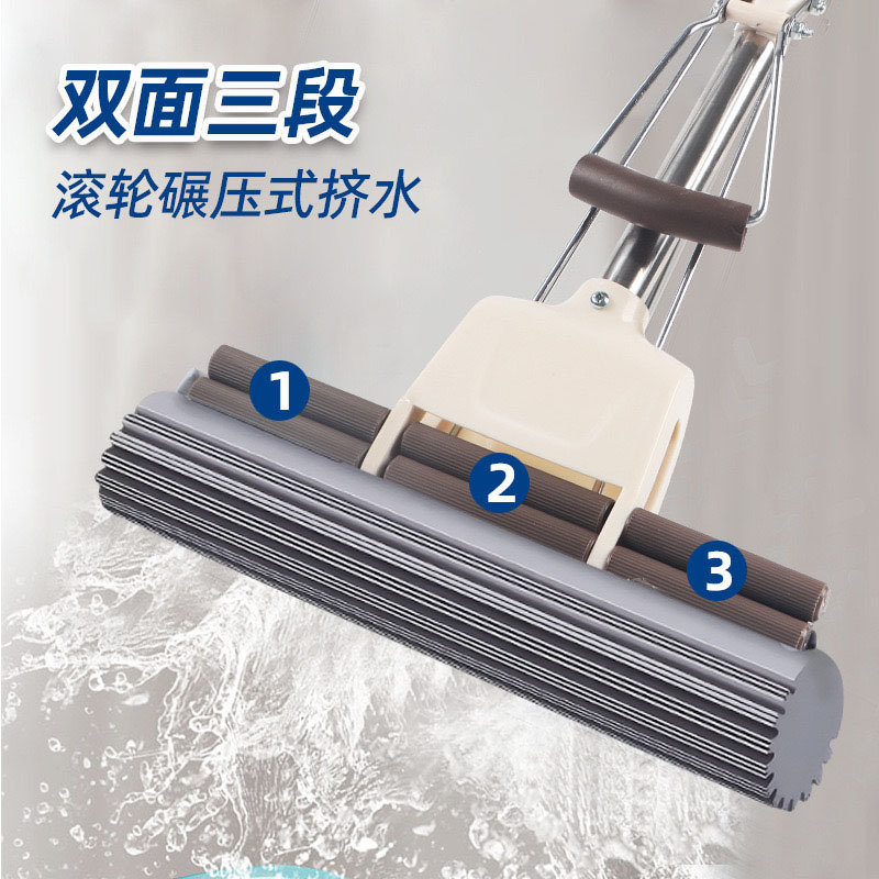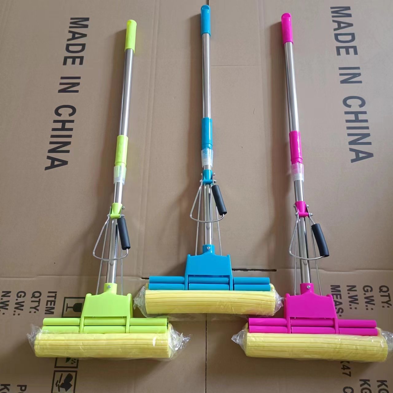 工場直送吸水モップ、伸縮鉄棒コロイドモップ、ローラー式絞り吸水スポンジモップ