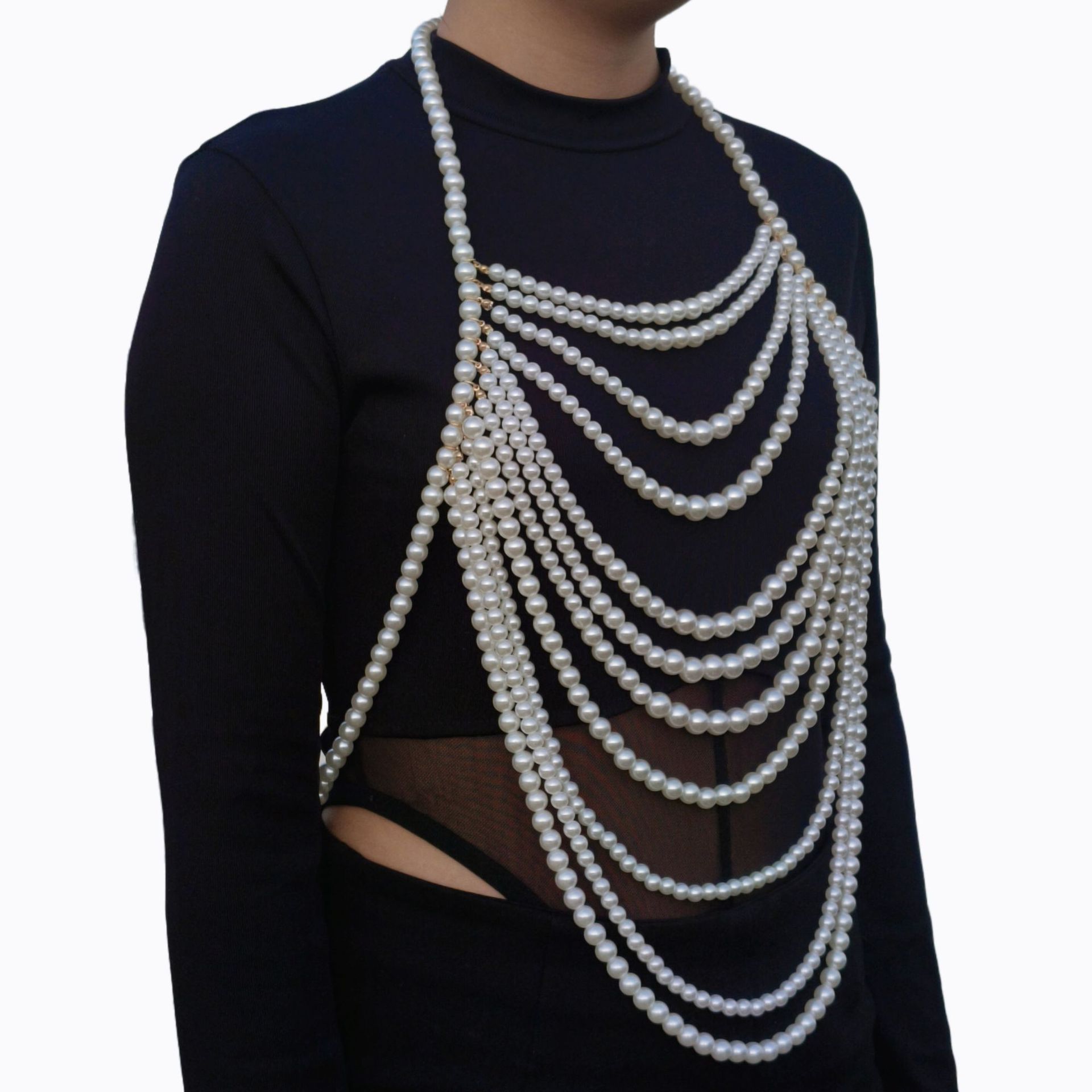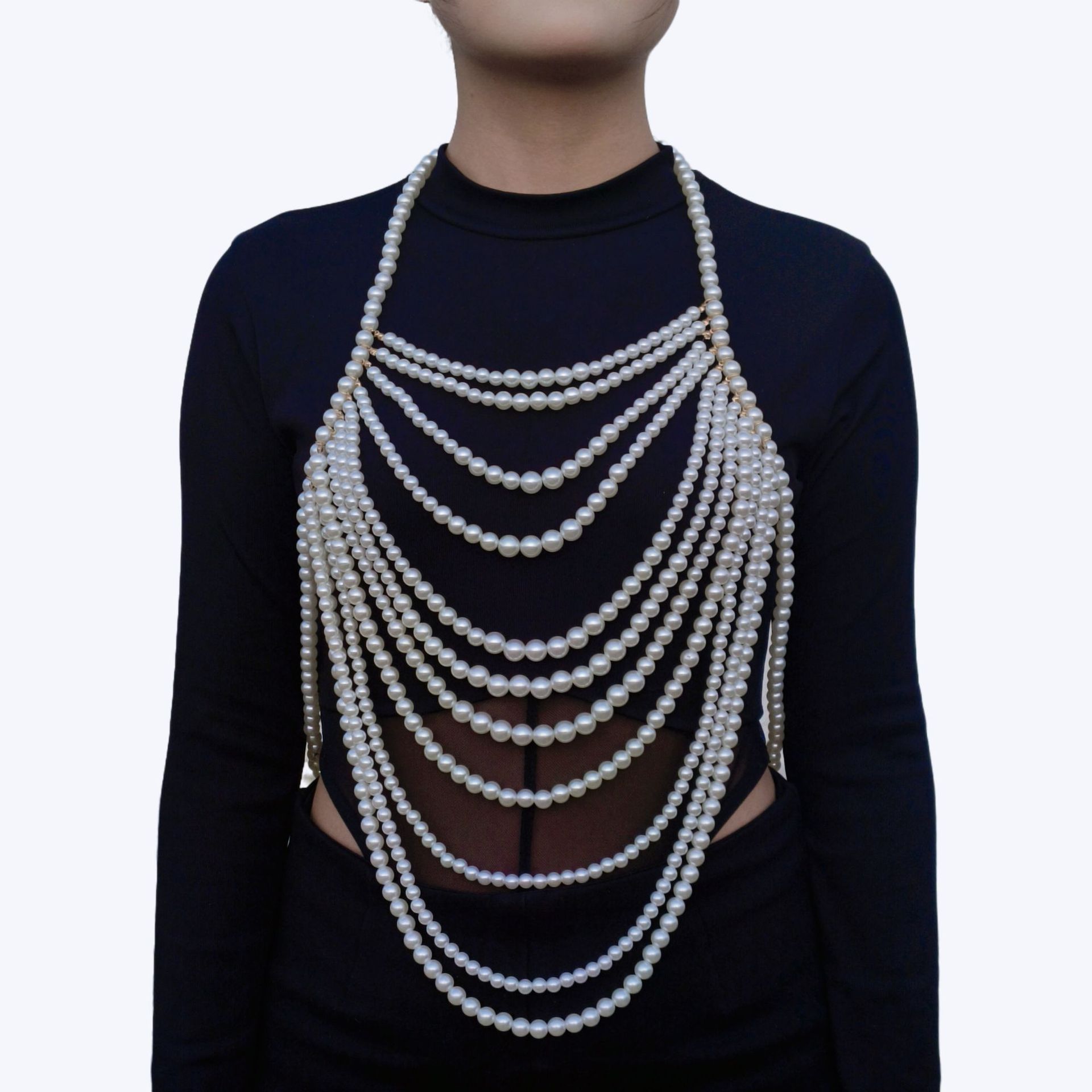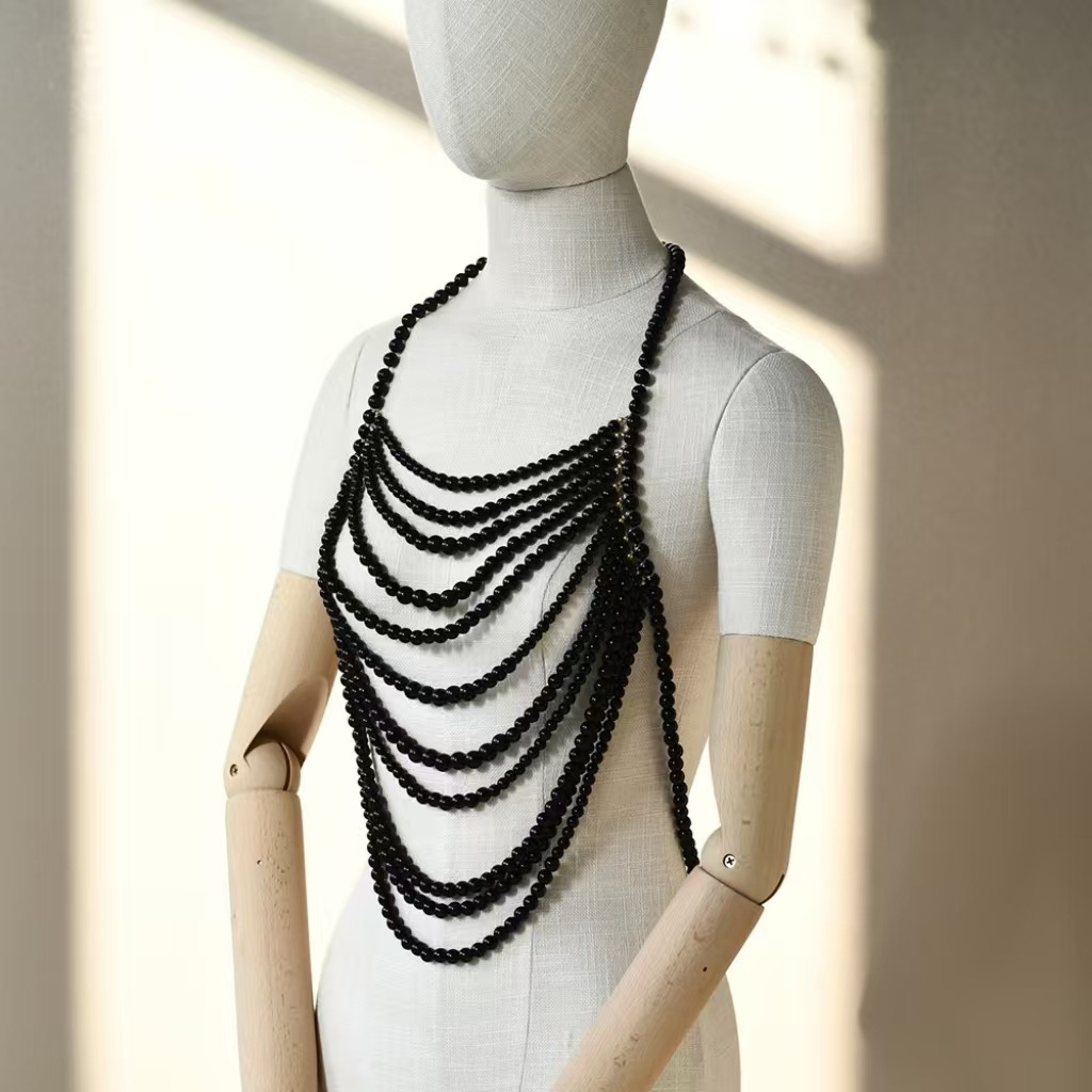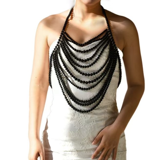 ヨーロッパとアメリカのクロスボーダー多層パールネックレスファッション誇張ショールハイエンドボディチェーンセクシードレス