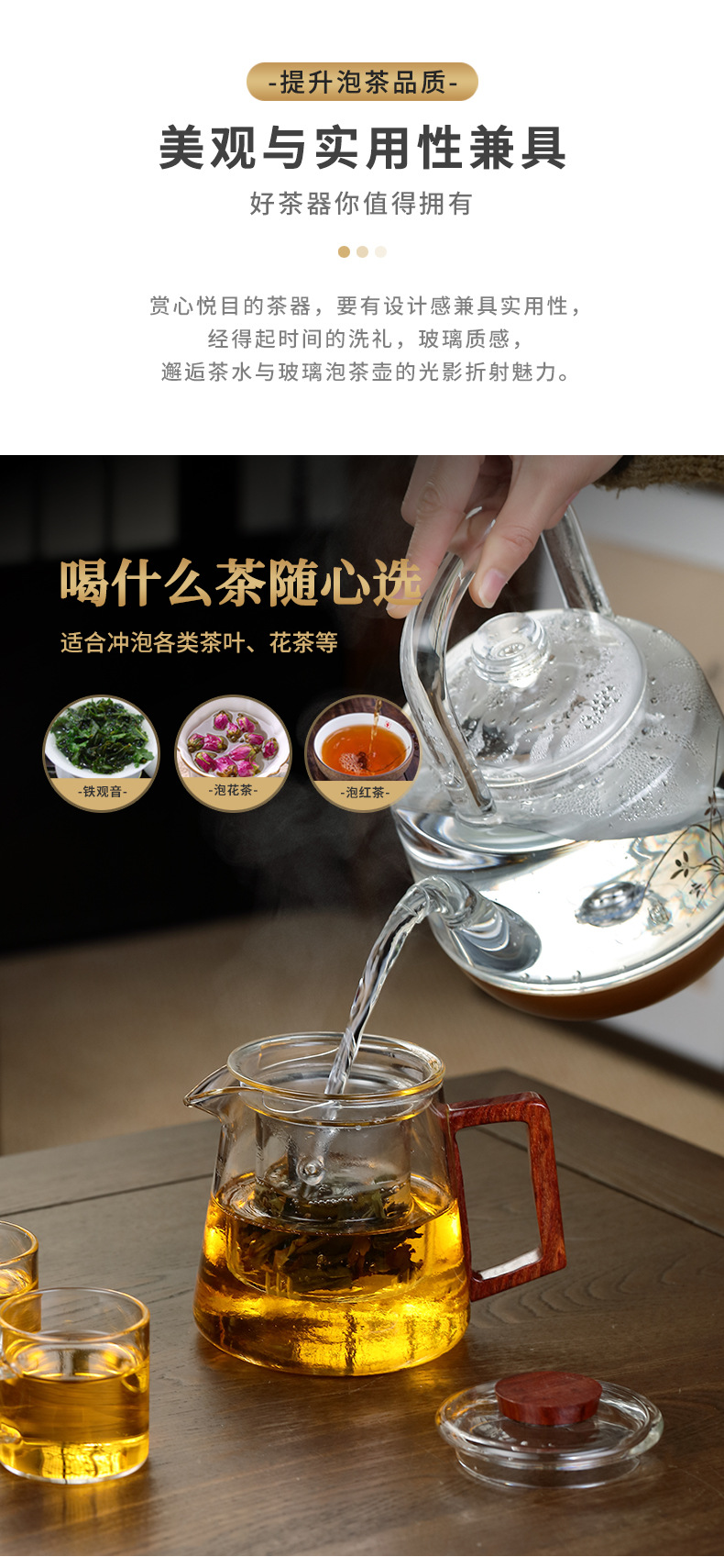 ガラスティーポット単瓶高温茶水分離ろ過茶器家庭用小花茶煮茶器泡ティーポットセット