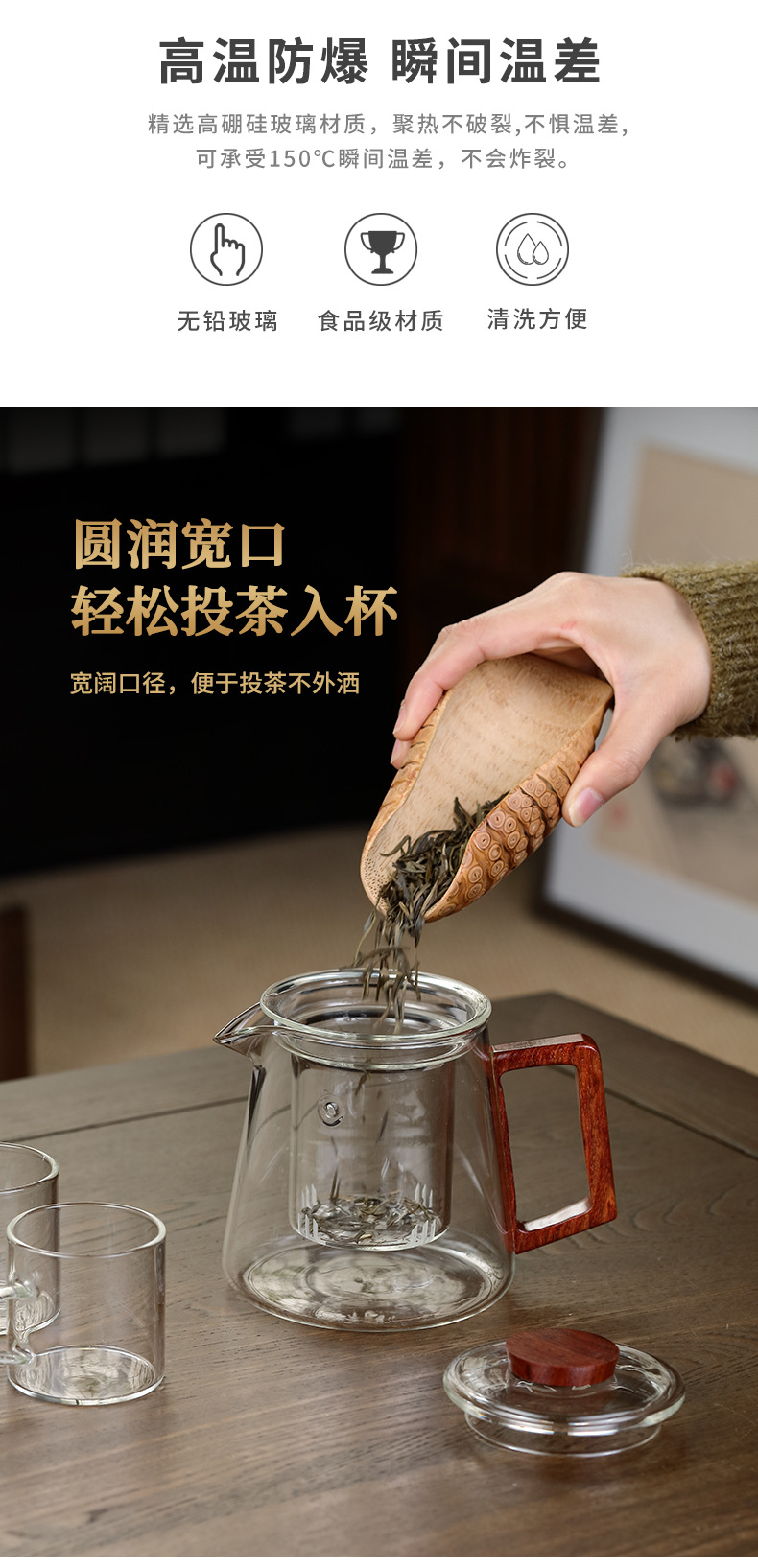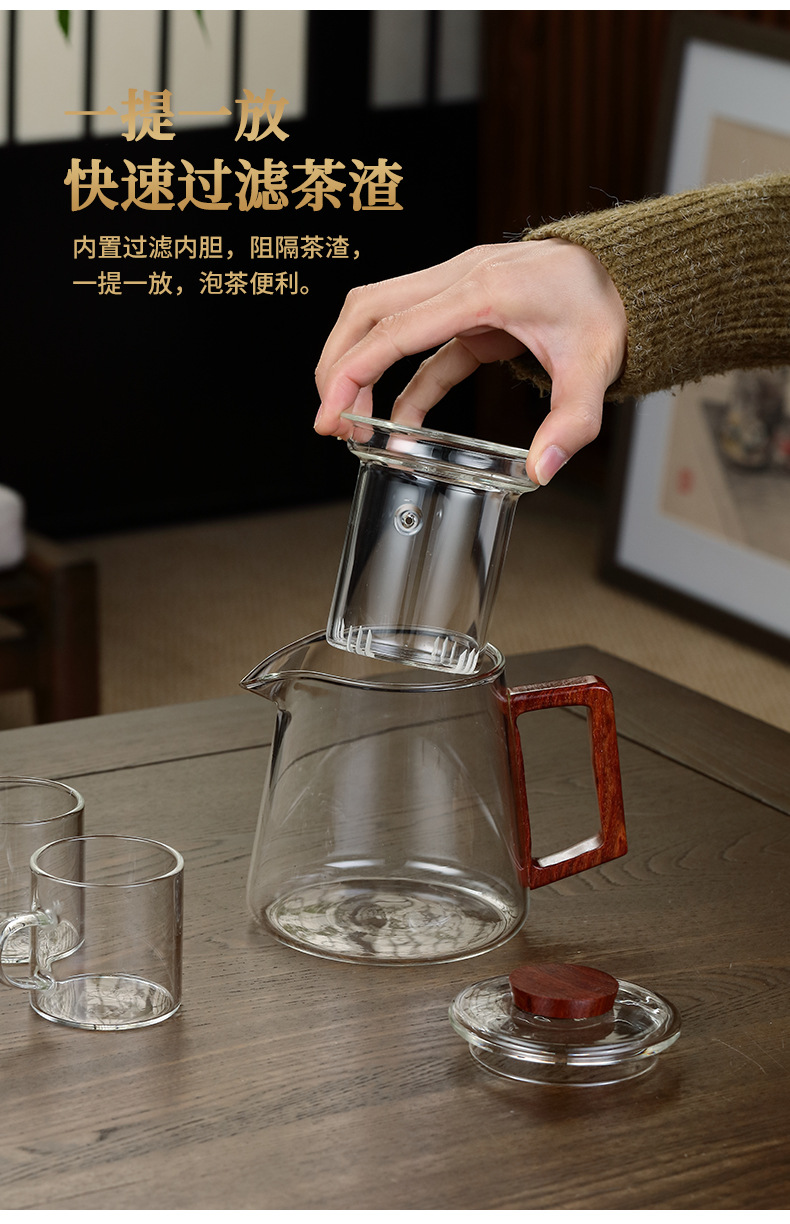 逸杯のティーポットを入れます。ワンボタンでお茶を濾過します。家庭用オフィスの高級ガラス茶器セットです。