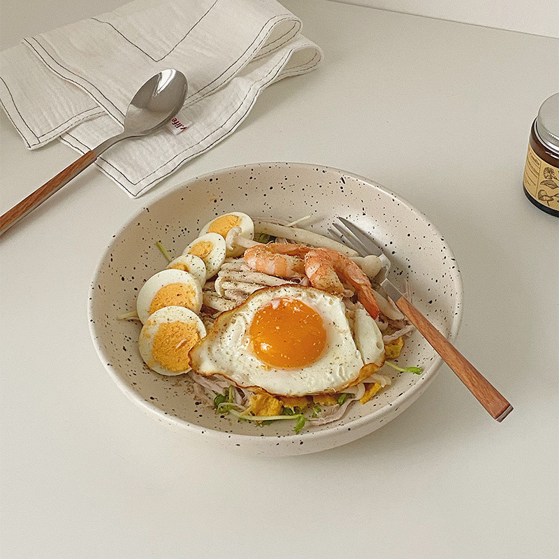*ムーニー* ごまドットスプラッシュインクスーププレート サラダプレート 一人用 サラダ 家庭用食器 深皿 野菜ボウル 和風軽食