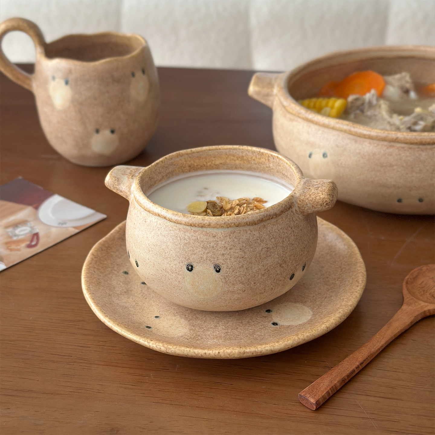 ムーニー レトロ手描き粗陶器双耳ボウル パーソナライズヨーグルトボウル ライスボウル サラダデザートボウル インスタントラーメンボウル スープボウル