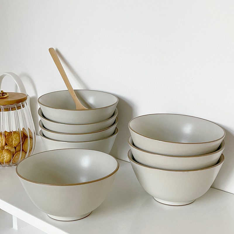 ムーニー * ファンに還元 * 実用日本家庭用陶磁器笠茶碗セット純色朝食オート麦茶碗