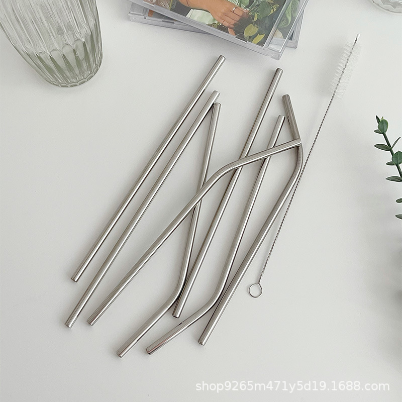 *ムーニーライフセンター* ins風 304ステンレスストロー シンプルミキシングスティック エルボメタルストローブラシセット