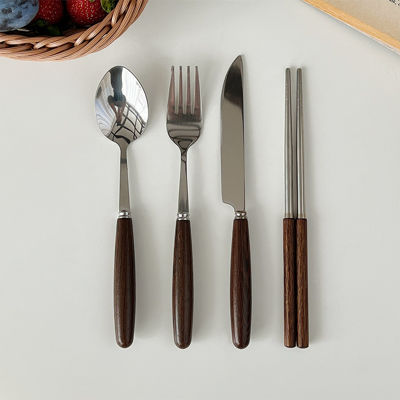 Mooney シンプルイン ウェンジウッドハンドル ナイフ、フォーク、スプーン 洋食器セット ステンレス レトロ 食事用 箸、フォーク、スプーン