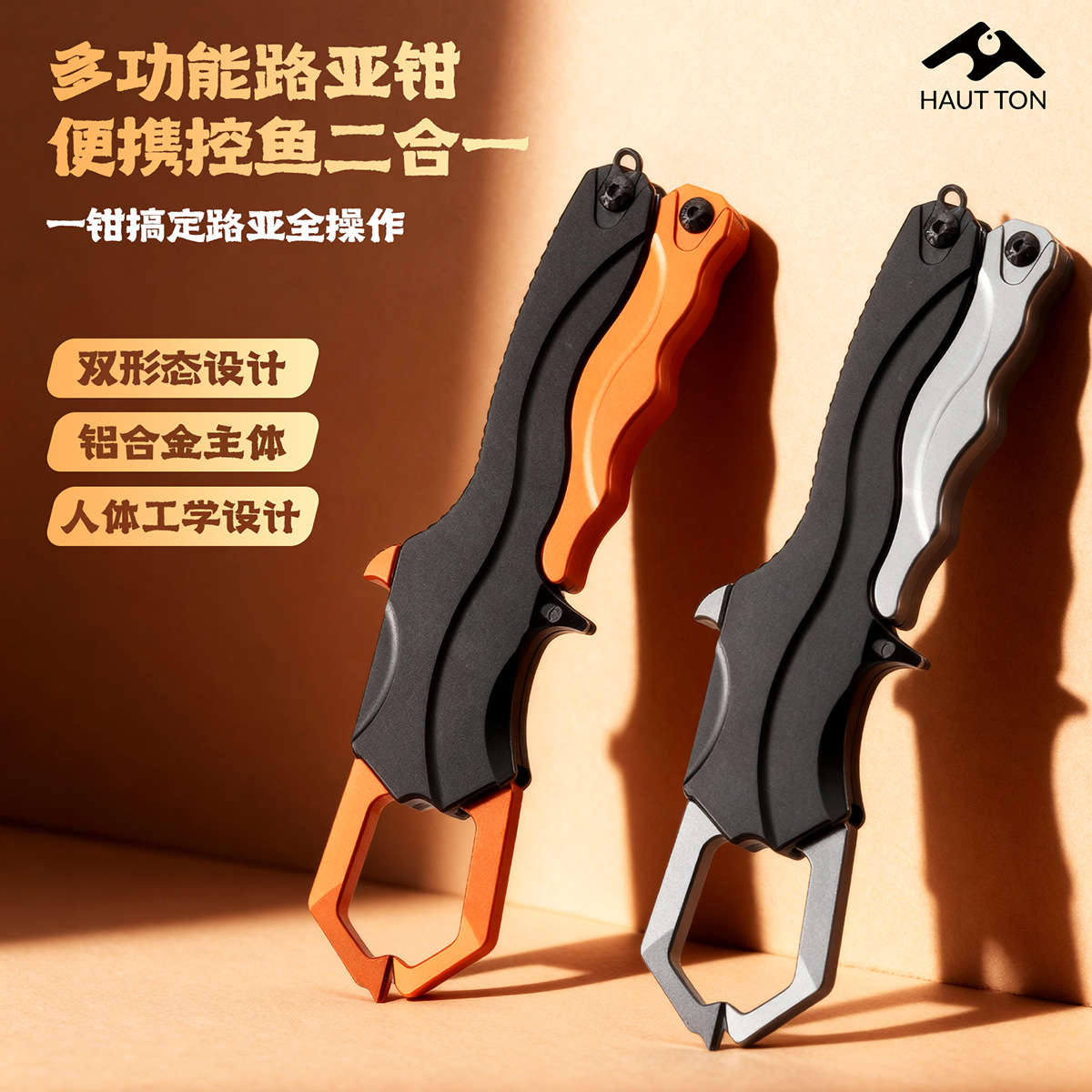 皓顿多功能铝合金枪式控鱼器 路亚钳合闭锁扣夹鱼器控鱼钳 提鱼钳