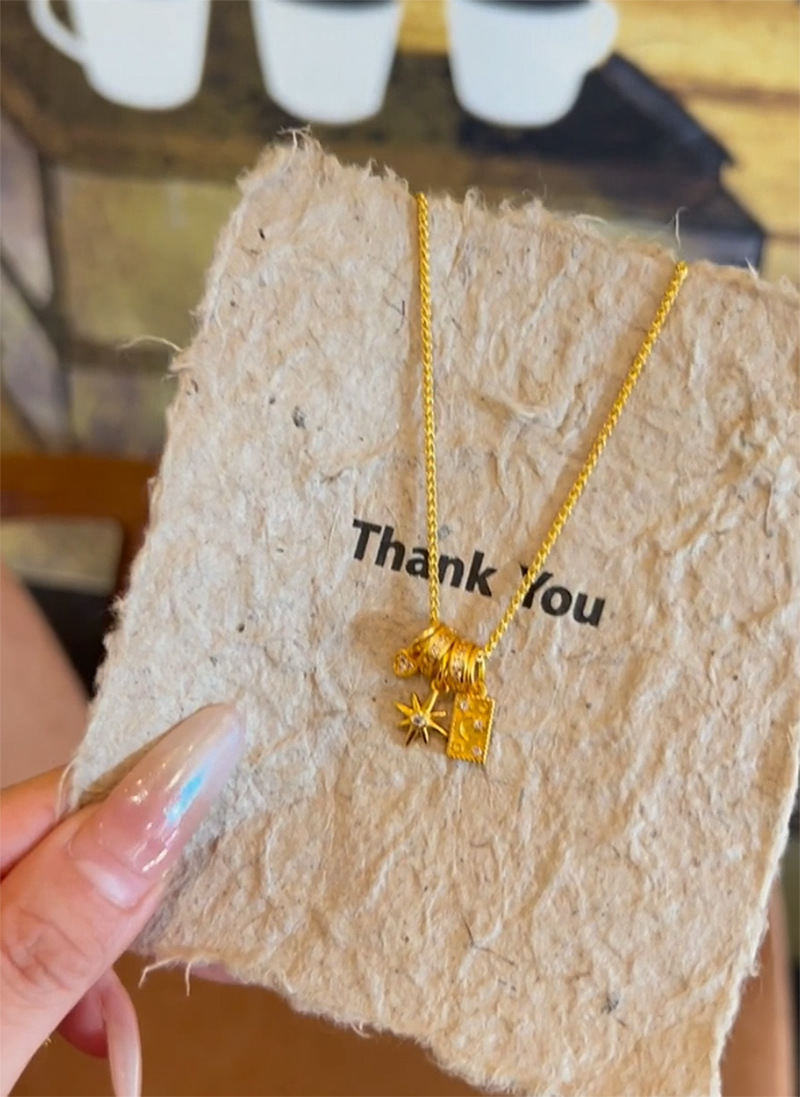 小红书爆款拉丝鸢尾花星芒黄水吊坠别针项链中古感锁骨链一件代发