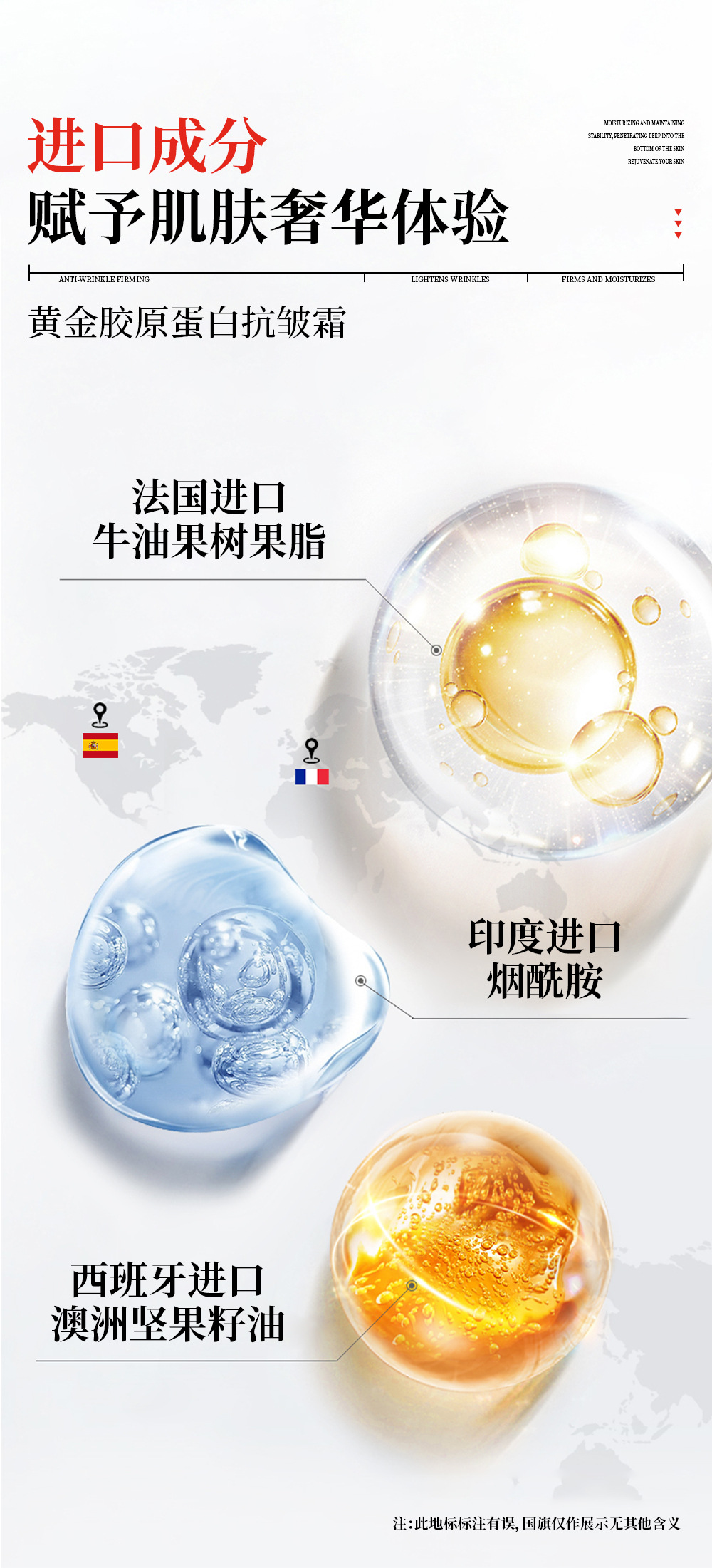 臻の恥ずかしさの黄金の組換えのコラーゲンのしわのクリームは細い紋様の薄い法律の紋様のクリームを改善して水の保湿クリームの卸売りを補います。