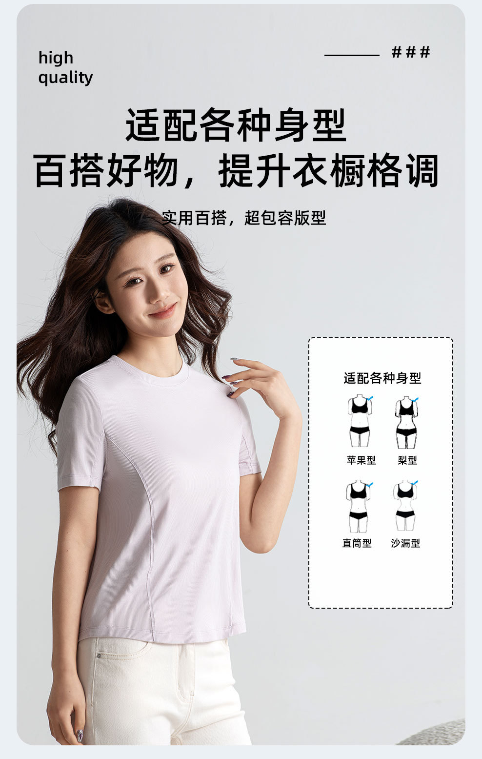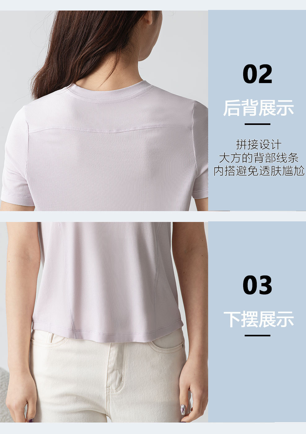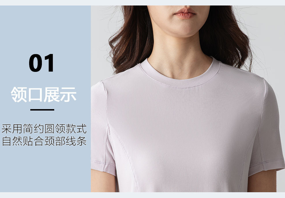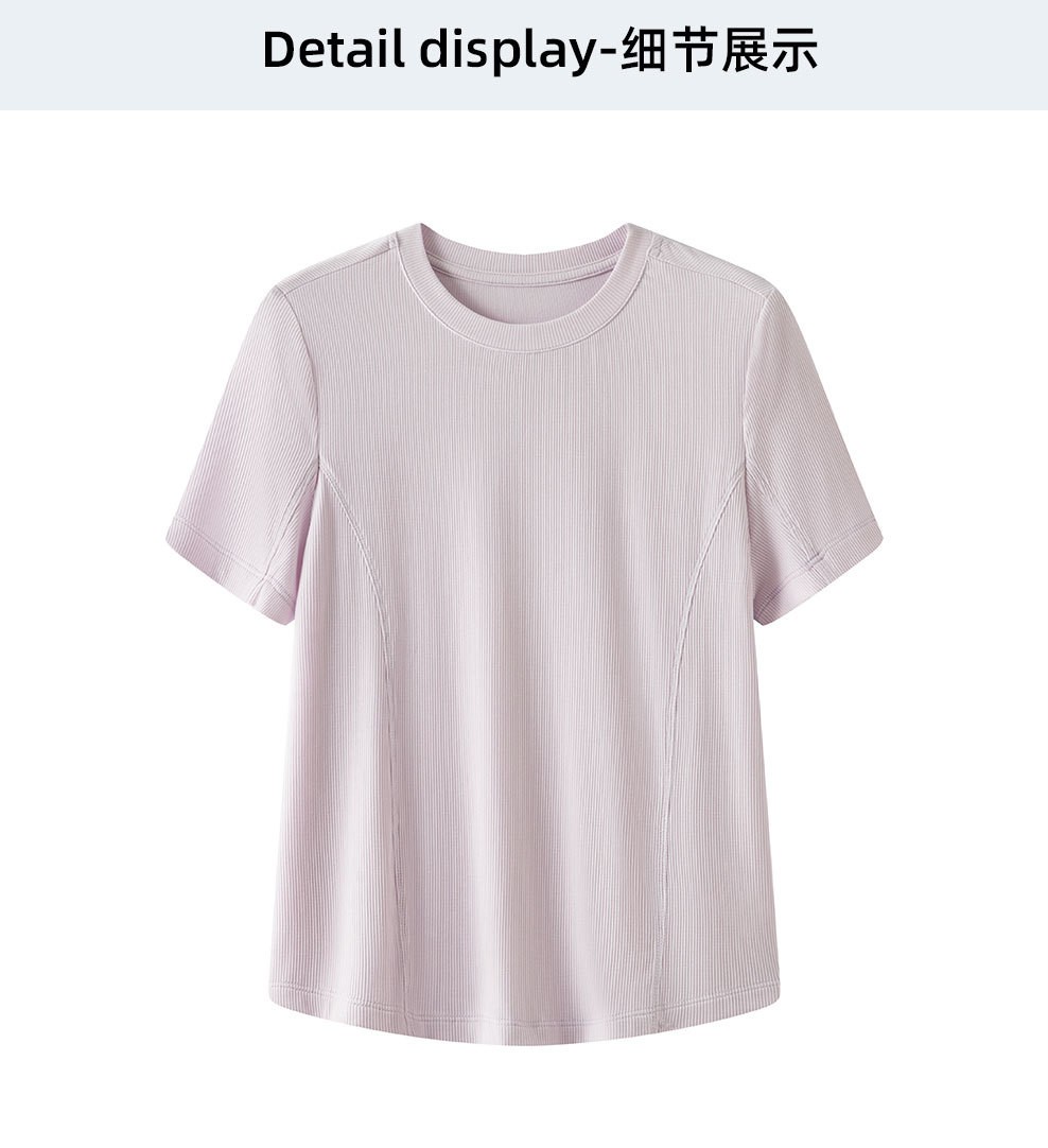 新商品のライゼル涼感リブ半袖tシャツ女性の肩の立体折れ線が痩せているアーチ形の上着L879