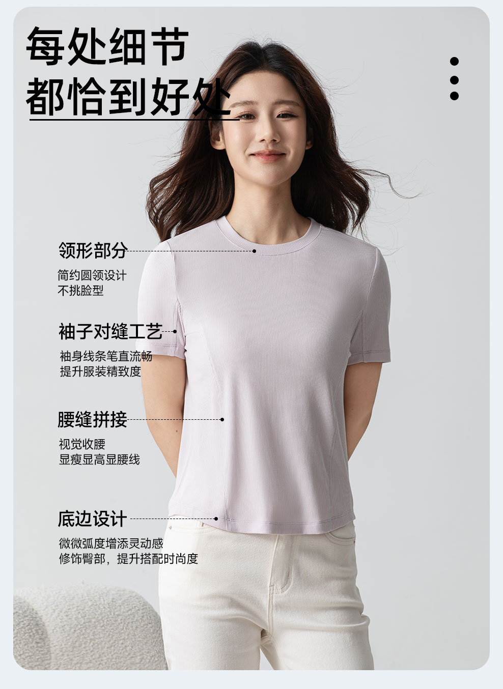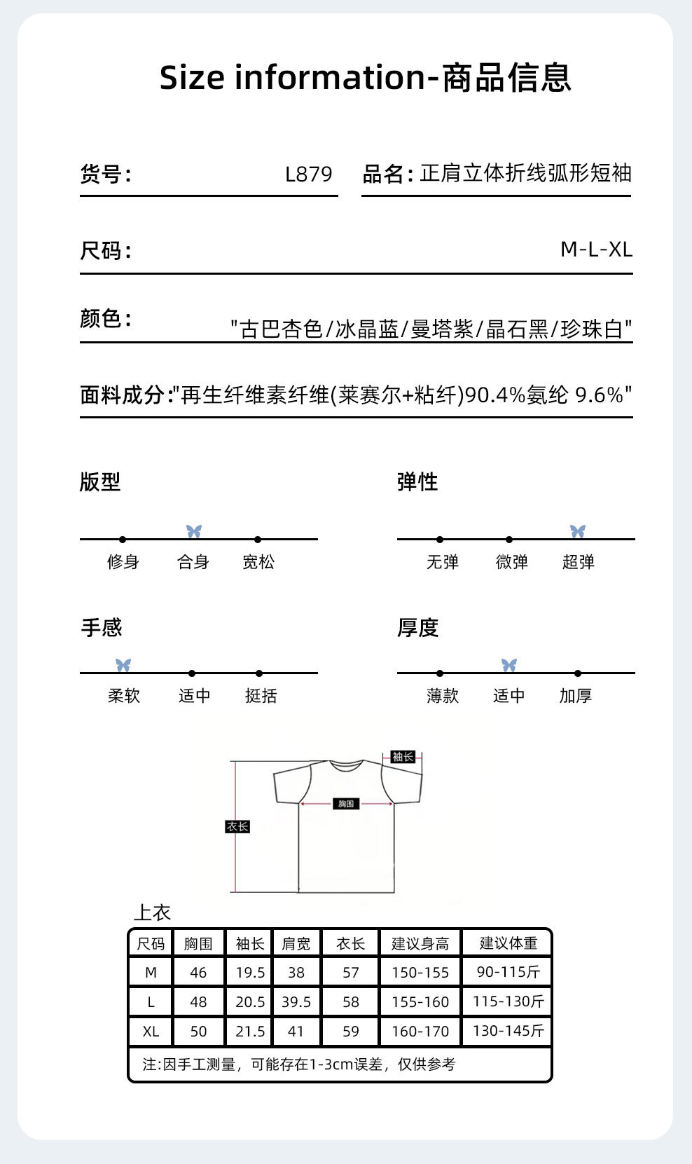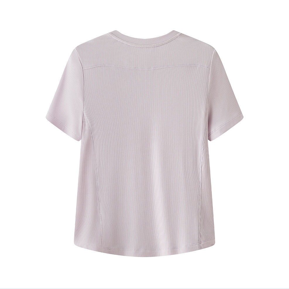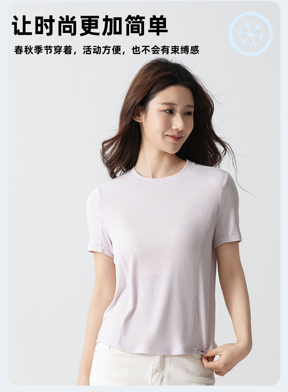 新商品のライゼル涼感リブ半袖tシャツ女性の肩の立体折れ線が痩せているアーチ形の上着L879