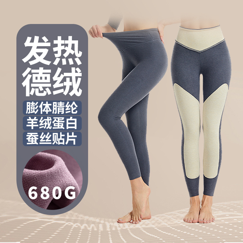350グラム両面膨体徳絨毛と90シルクパッチ冬の新型ベルベット発熱保温底高腰ズボン