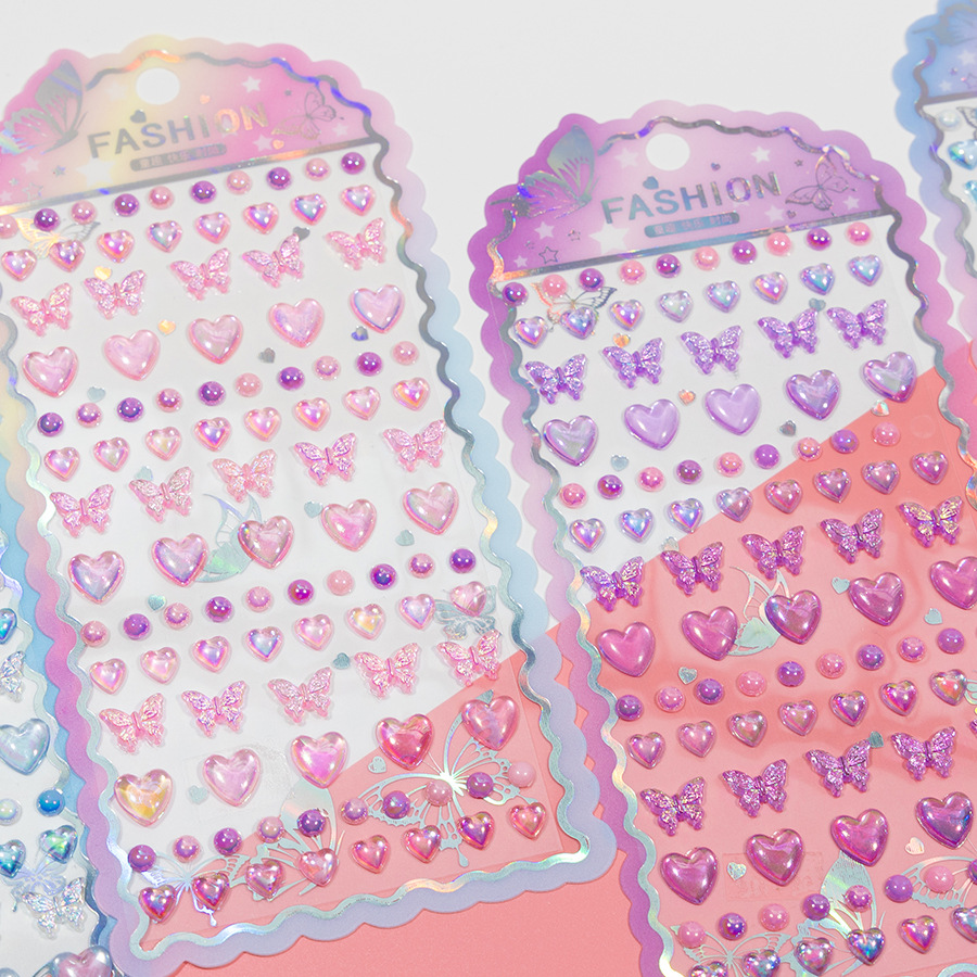 3D蝴蝶彩色珍珠立体水晶贴纸儿童益智奖励女孩手工装饰礼品小贴画