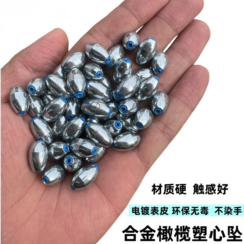 中空橄榄坠合金碳钢空心橄榄铅坠带塑心电镀镜面钓鱼凹橄榄形铅