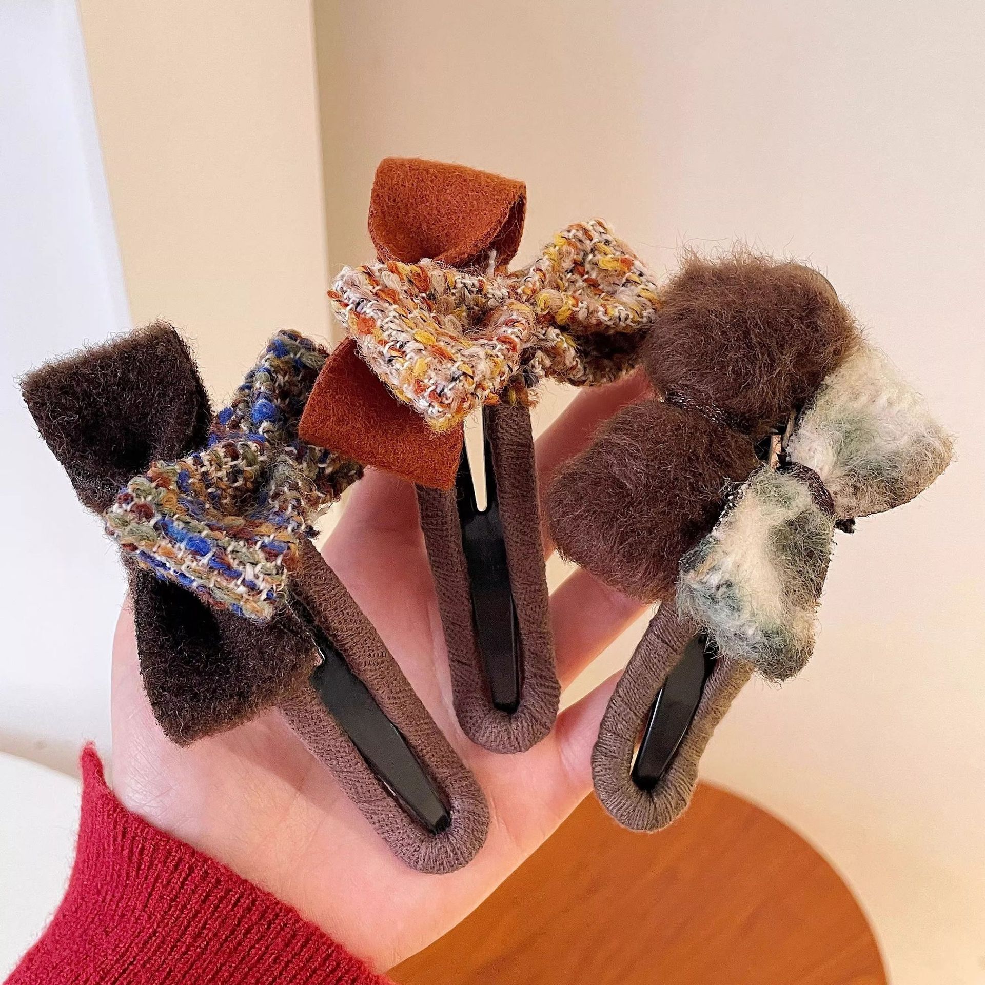 Xiaoxiangfeng リボンウールフェミニンな後頭部ヘアピンカモノハシクリップ秋と冬の高級帽子秋と冬のインターネットセレブ