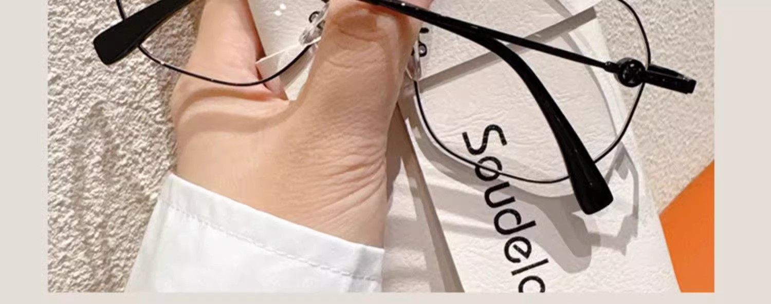 素顔の金糸の縁なしのメガネの近視の女性の度数は高級感があります。