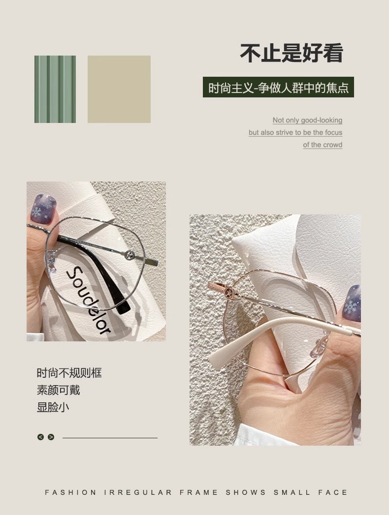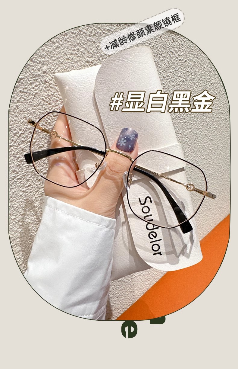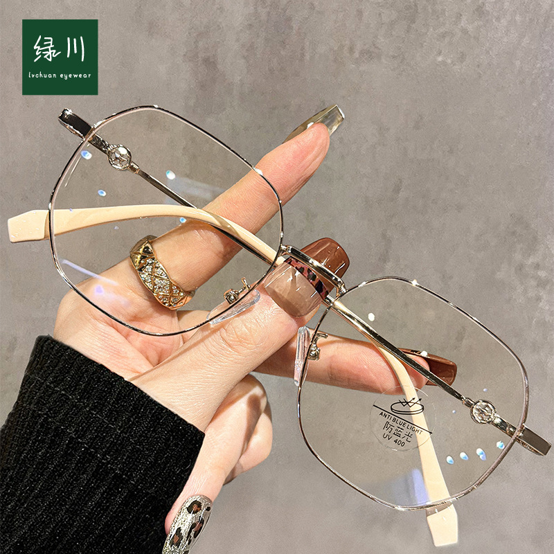 高级感金糸细縁メガネレディースおしゃれ防ブルーライトすっぴんメガネフレーム男性可度数近视メガネフレーム