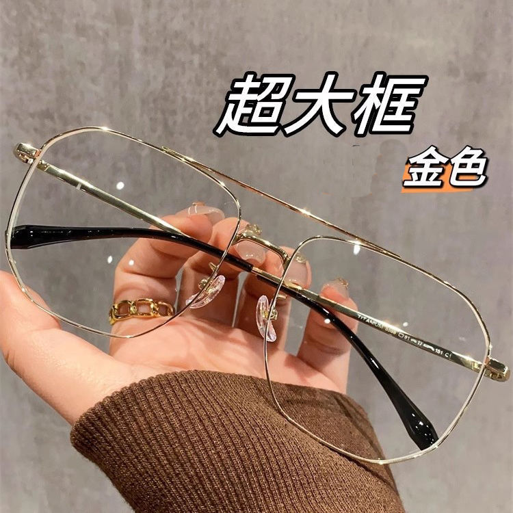 新しいラージフレームレトロラージフレームダブルビームメガネ男性と女性韓国語バージョントレンディなハイエンドビッグフェイス痩身無地卸売代理