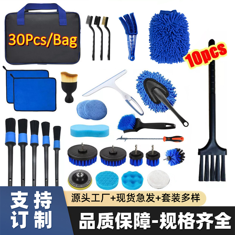 クロスボーダー热い贩売青い车クリーニングブラシ26点セットハブブラシ车エアコンブラシスポンジ研磨ブラシハンドバッグ
