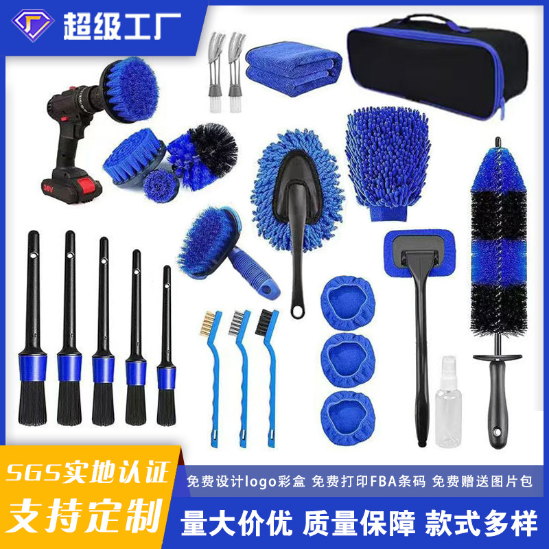 クロスボーダー熱売洗車セット25点セット自動車タイヤ内装吹出口洗浄ツール電動洗浄ブラシ