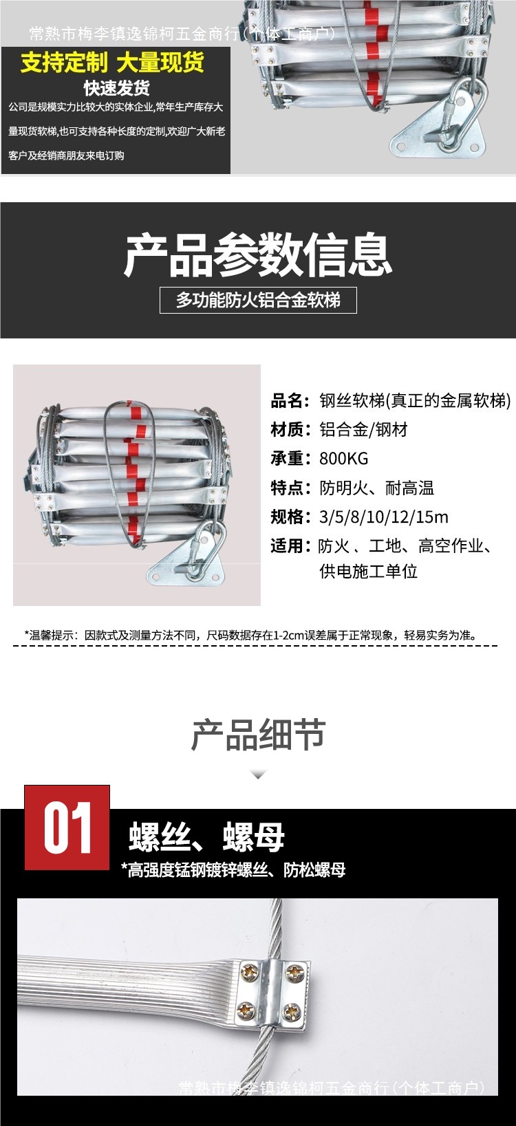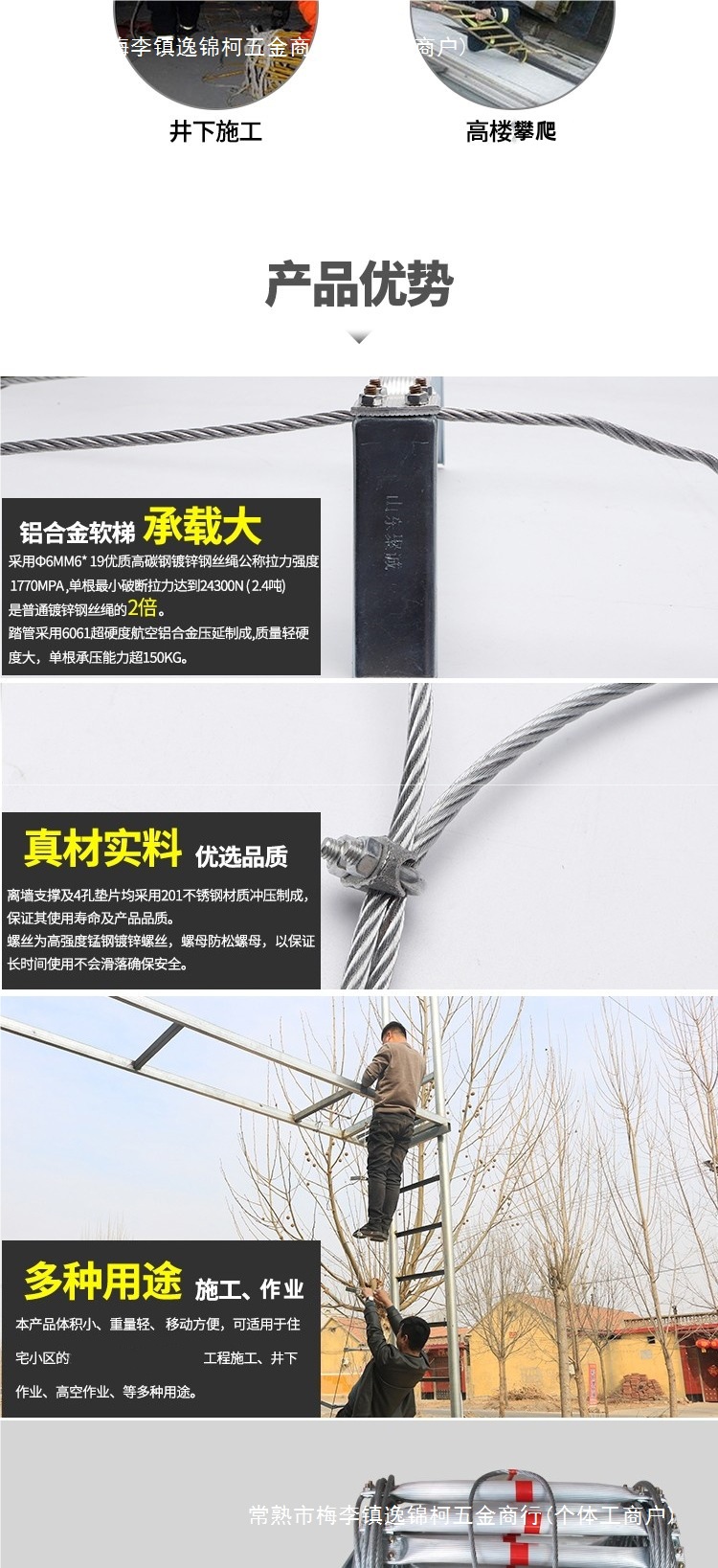 ソフトはしごロープはしご家庭用クライミングはしごワイヤーロープアルミ合金ロープはしご建設作業ソフトはしご高層ビル降下ロープ