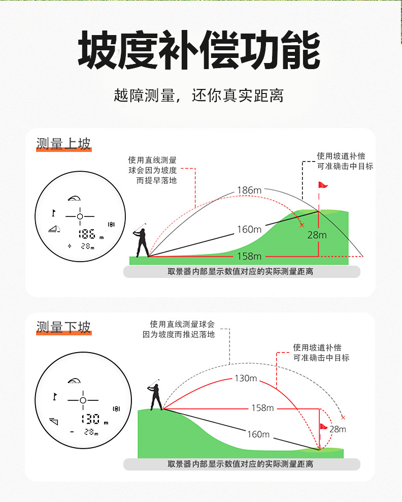 多功能高精度高尔夫激光测距仪望远镜磁吸坡度补偿远距离旗杆锁定
