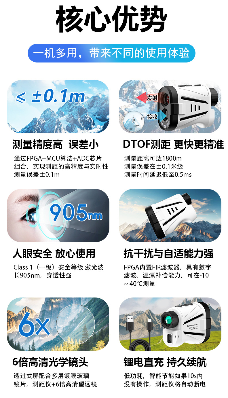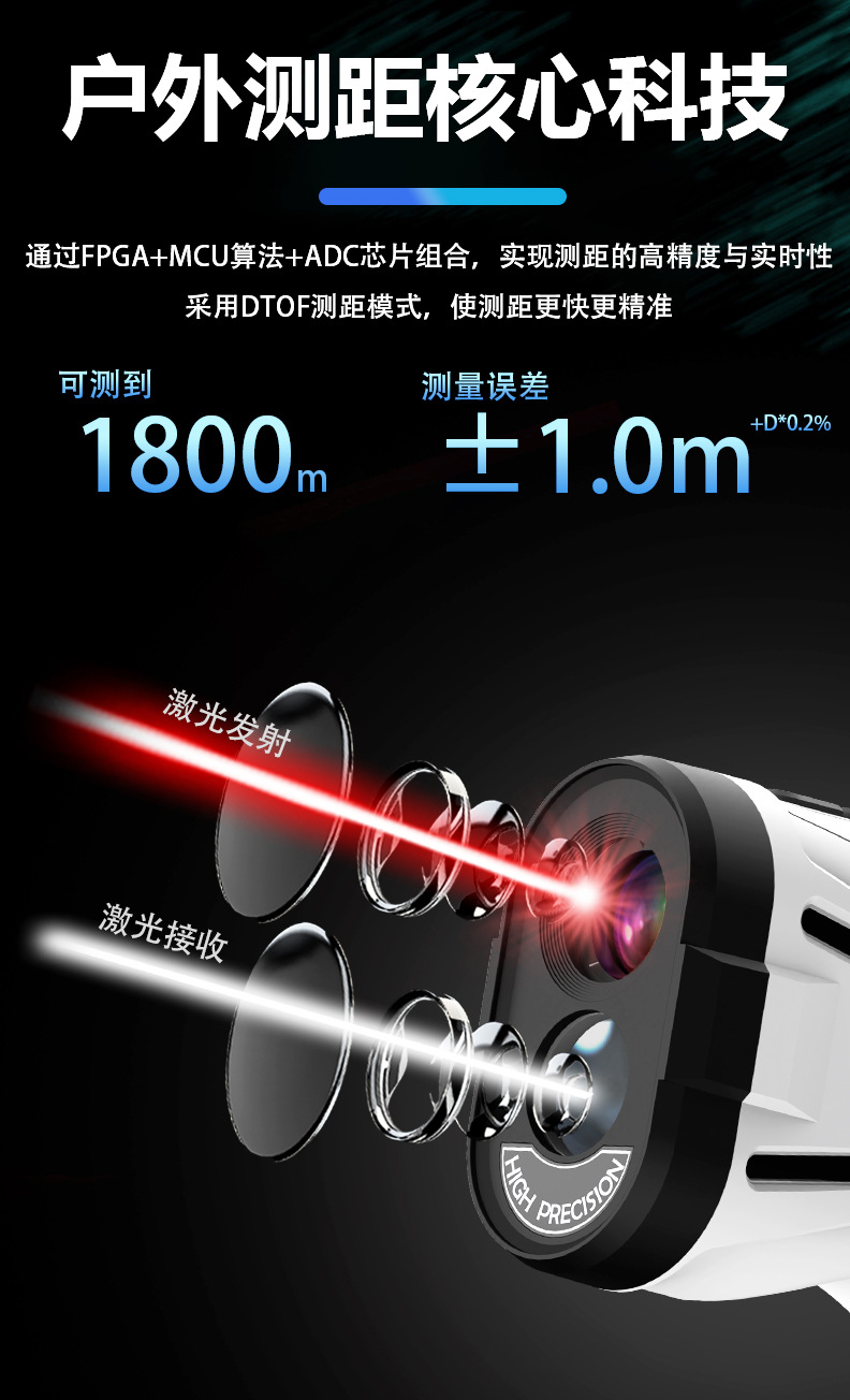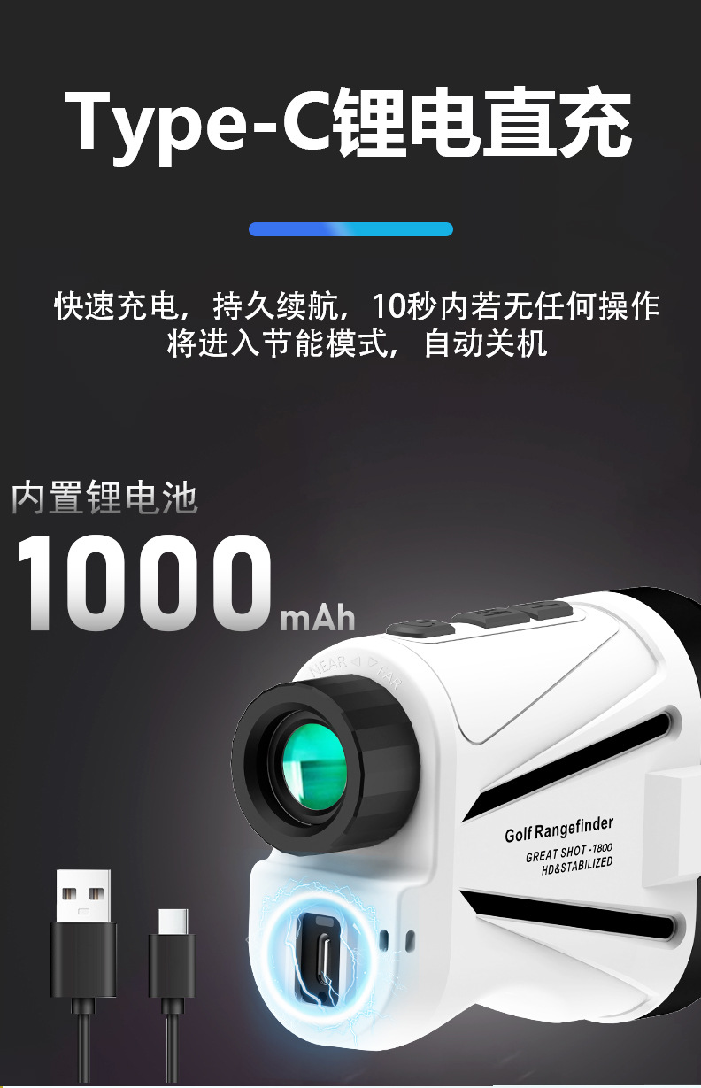跨境高尔夫测距仪望远镜充电款旗杆锁定连续测距黑科技激光测距仪