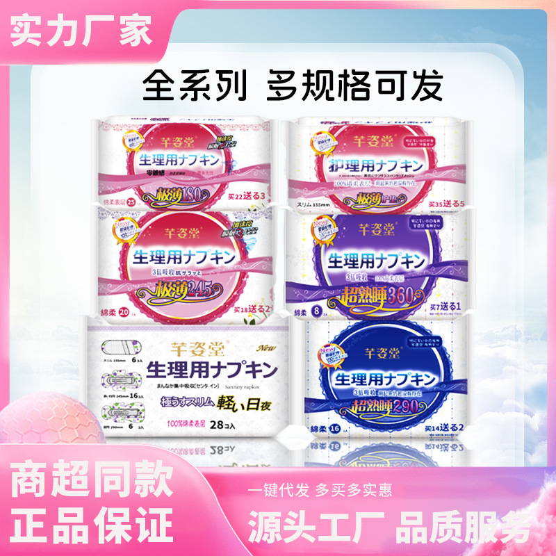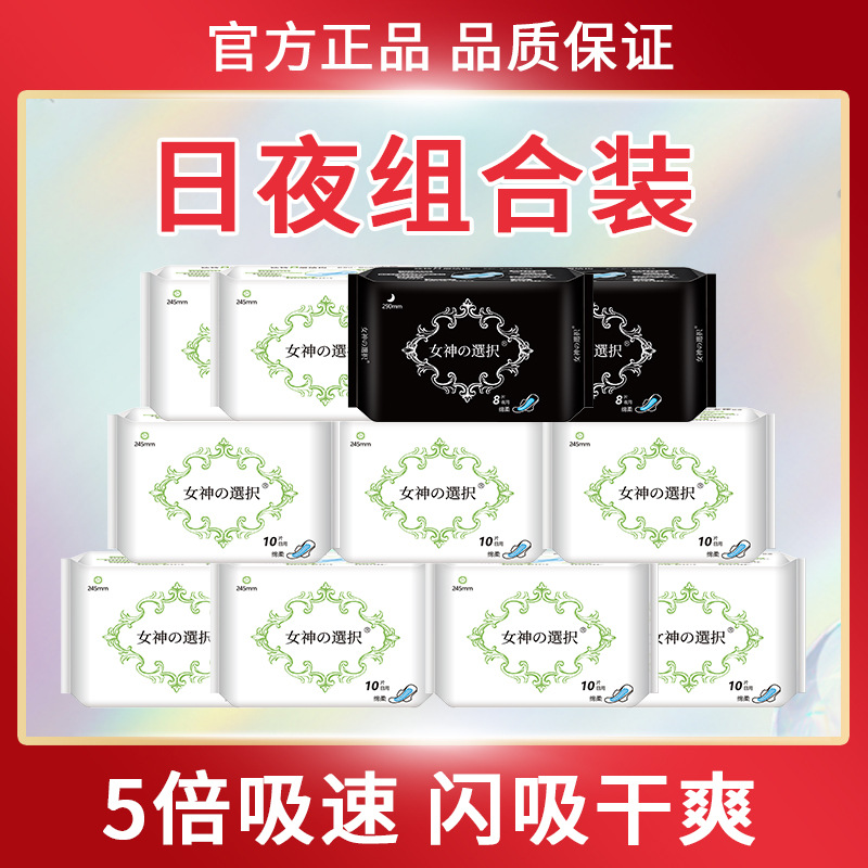 源工場医療グレード生理用ナプキン女神昼夜用コンビネーションパック超薄綿柔らか生理用ナプキン全箱卸売無菌
