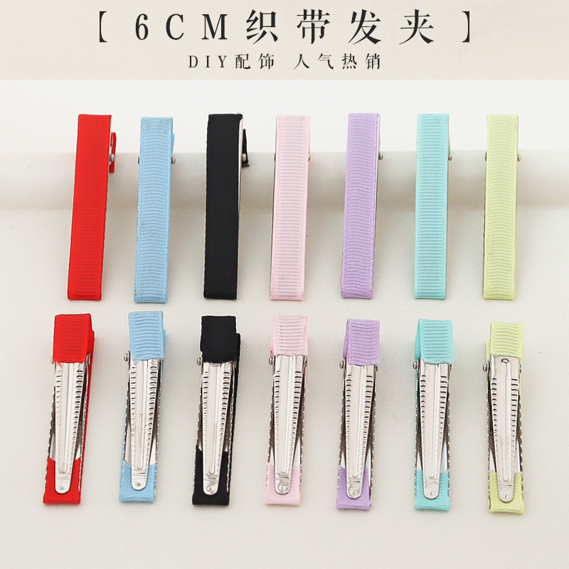 3.5/5センチ全包ヘアピンdiy手作りカラー双叉アヒル口クリップ子供の頭飾りキャンディー色リボン髪飾り