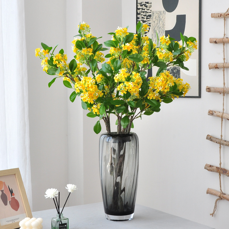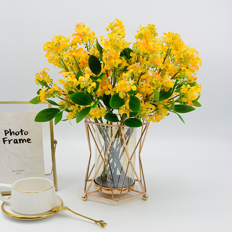 3叉千里のシミュレーション花の家庭の客間の置物の装飾は葉の桂の花の枝の偽の花の夜来の香の桂の花のシミュレーションの花を持ちます。