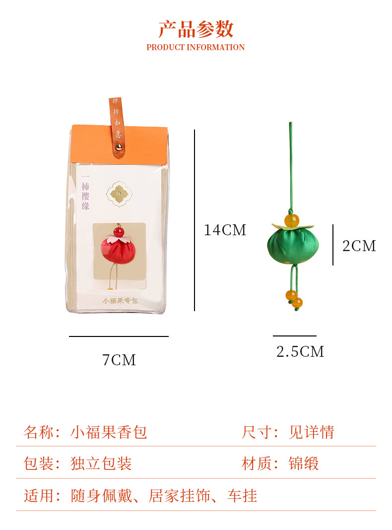 小福果香包古風香嚢柿端午節香袋平安符携帯ストラップ携帯diy材料バッグ