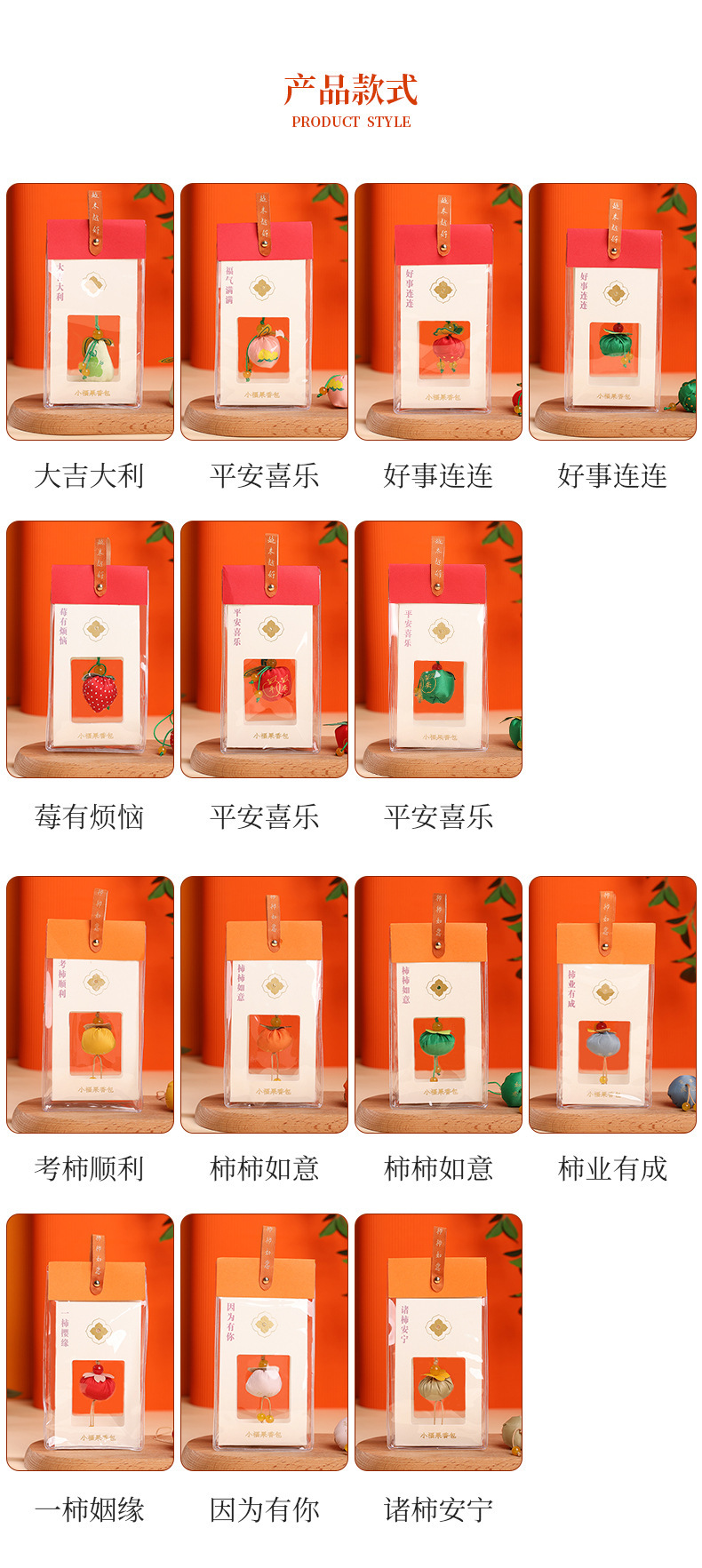幸運を,祝福に満ちた,良いことは次々と起こる,良いことは常に緑色です,ベリーには悩みがある,平和と喜びの赤,平和と喜びの緑,試験は順調に進みました,柿如意オレンジ,柿如意グリーン,SHIYEYICHENG,YISHIYINGYUAN,Because of you,平和をもたらす,パーシモン如意レッド