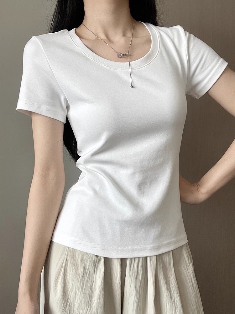 夏季正肩t恤白色短袖女修身辣妹短款打底衫新款圆领外穿源头厂家