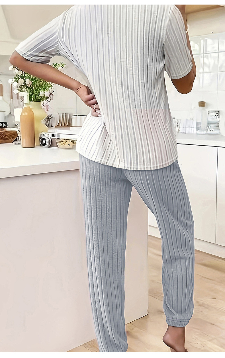 スイートラブパジャマレディーススーツ秋の新しい気質ラウンドネック半袖ズボンツーピースセット快適なホームウェアトレンディ