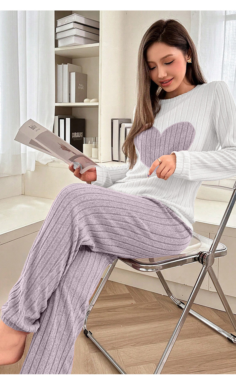 クロスボーダーラブパターンカラーブロックパジャマレディーススーツ春と秋の新作ソフト長袖ズボンホーム服2点セット