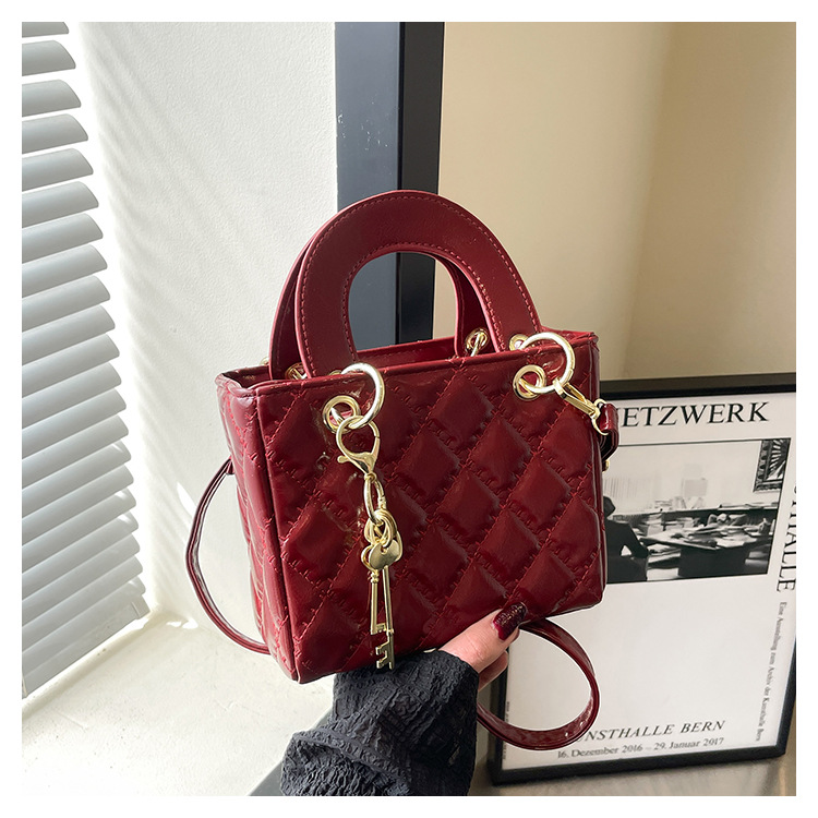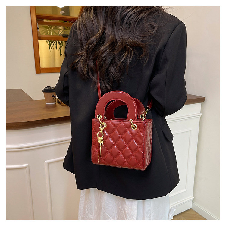 2025春季新款时尚百搭高颜值菱格链条单肩斜挎包今年流行小方包女