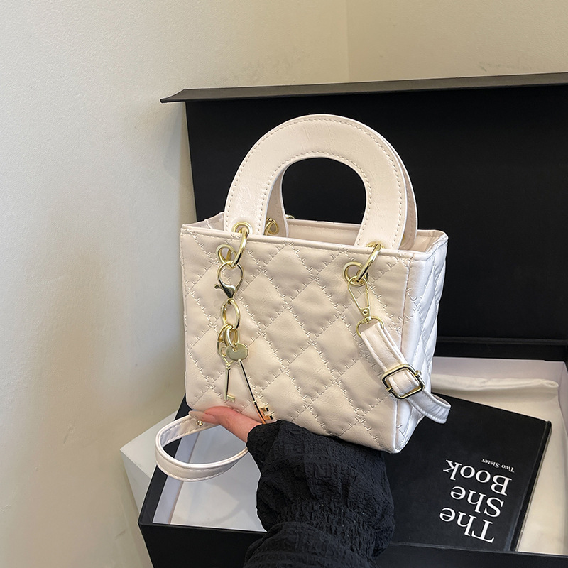 シンプルな洋気菱格刺繍線のハンドバッグ2025潮の新型韓国版レトロなカジュアルな肩の斜め掛けの小さい方のカバンの女性