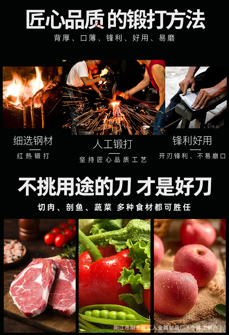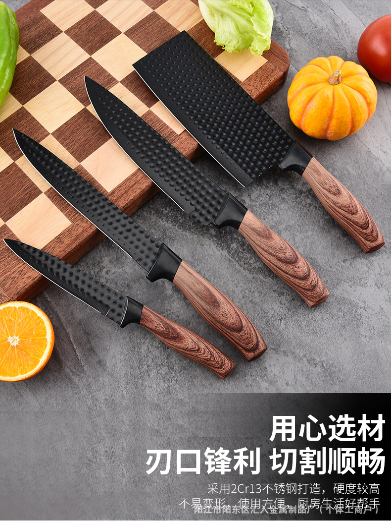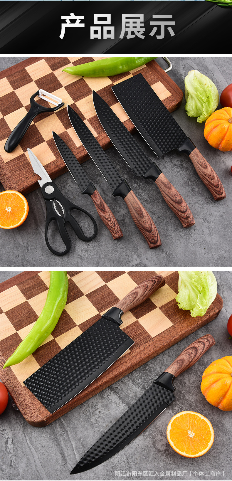 刃物セットハンマー木目柄六点セット鍛造ステンレス塗装シェフナイフクロスボーダーキッチンセット工場