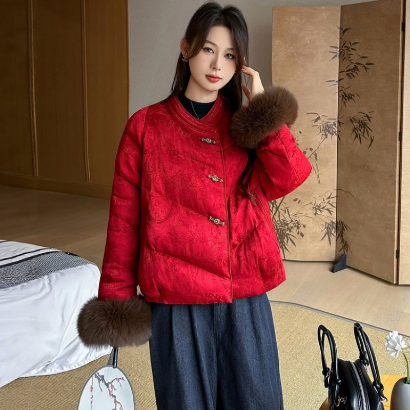 新年战袍新中式国风棉衣女短款妈妈冬季新款洋气人丝提花轻奢外套