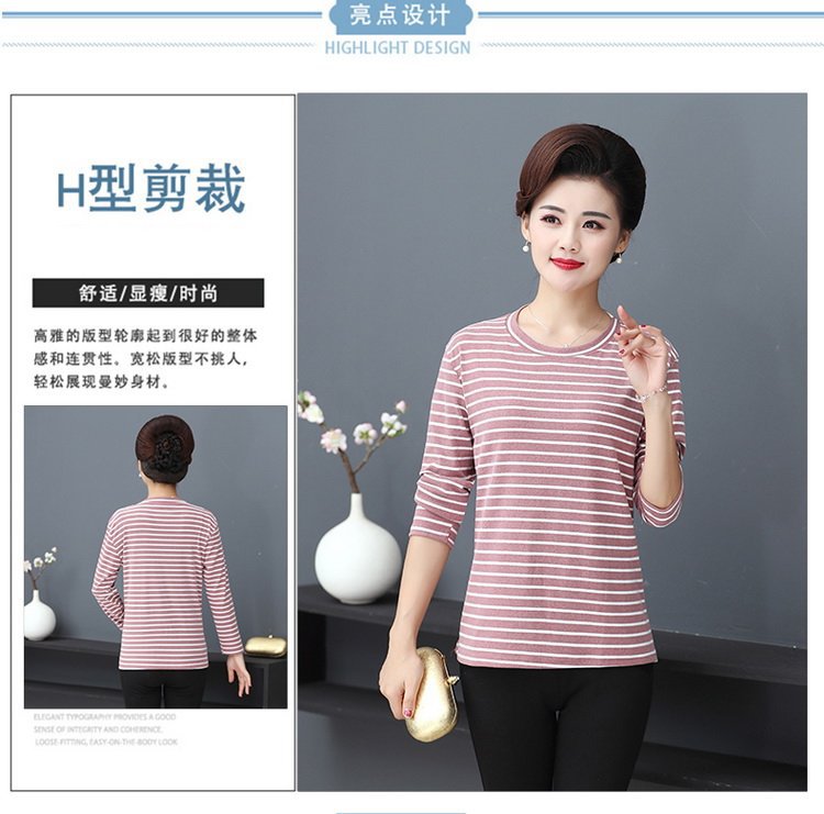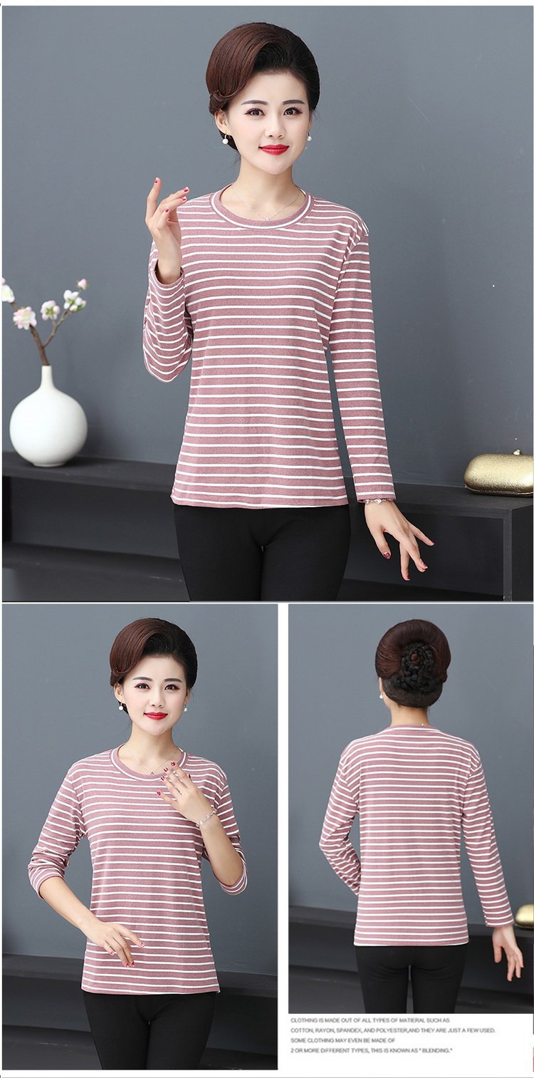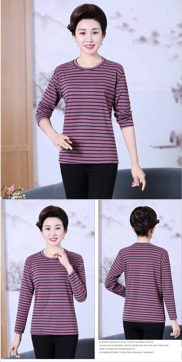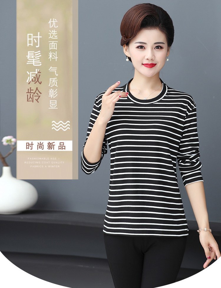 2023年新作中年ママ向け長袖Tシャツ、秋アウター、ゆったりプラスサイズ、女性用お腹カバーボトムスシャツ