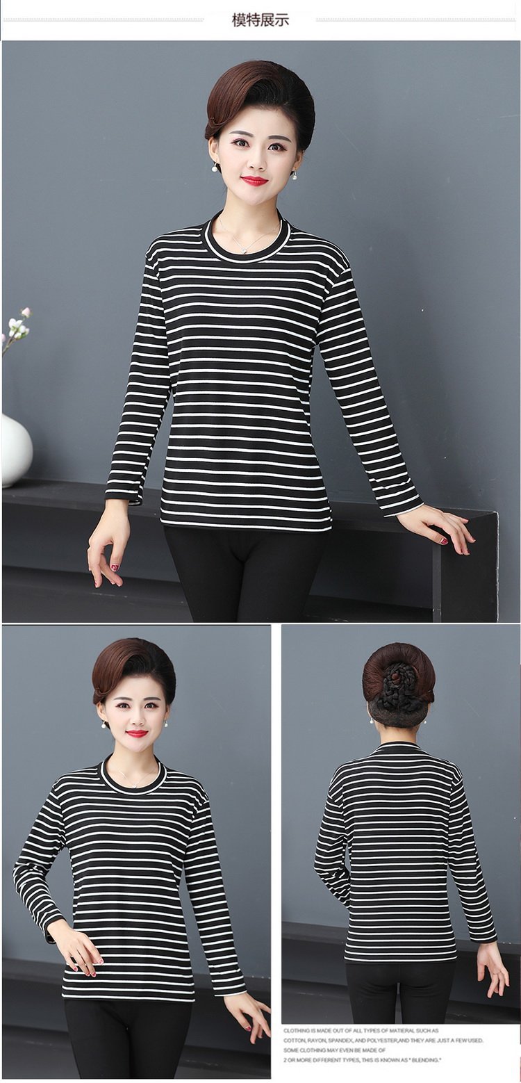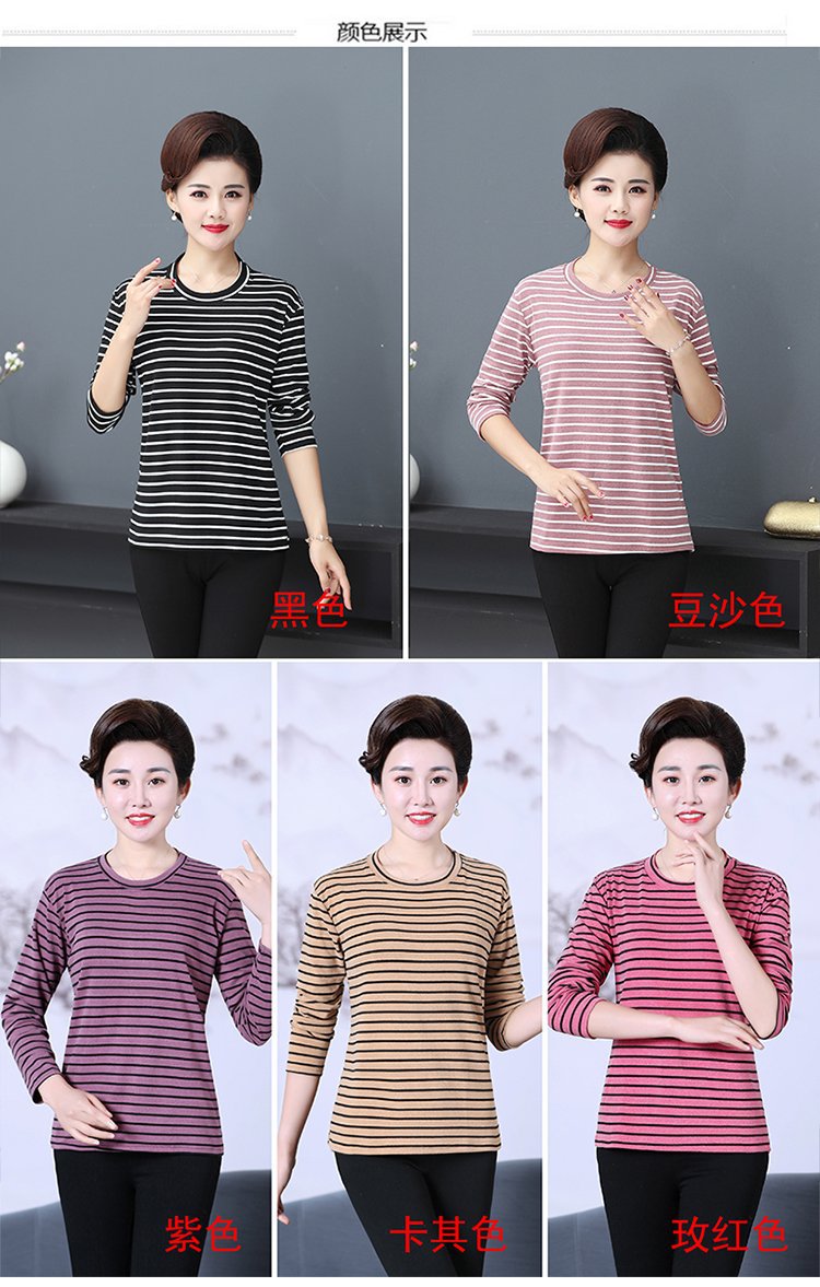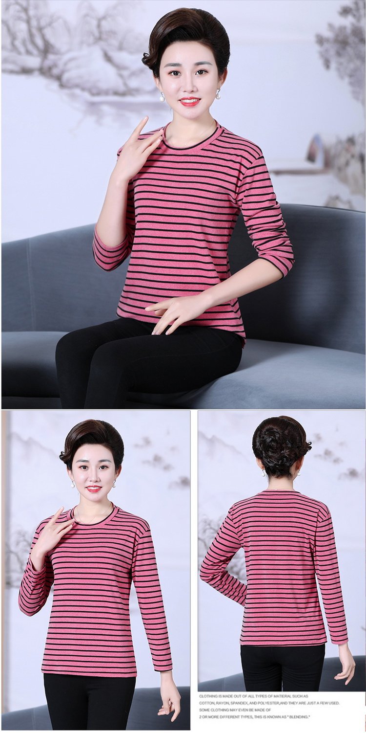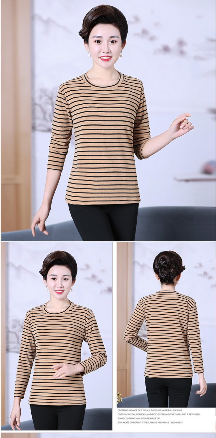 2023年新作中年ママ向け長袖Tシャツ、秋アウター、ゆったりプラスサイズ、女性用お腹カバーボトムスシャツ