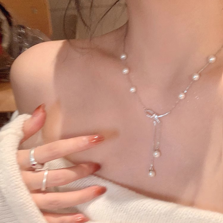 蝴蝶结仿珍珠流苏项链女款2025新款爆款颈链轻奢小众高级感锁骨链