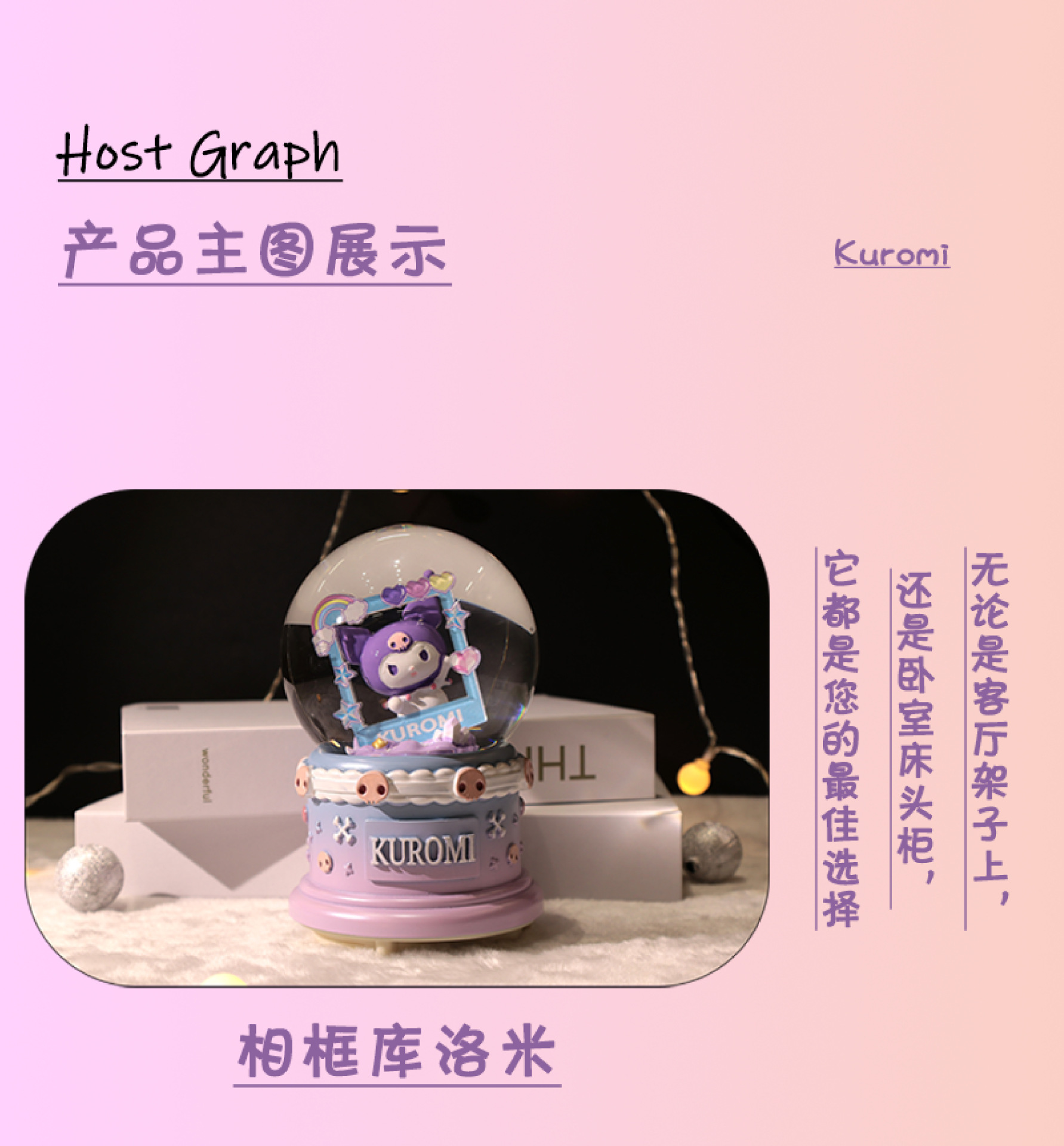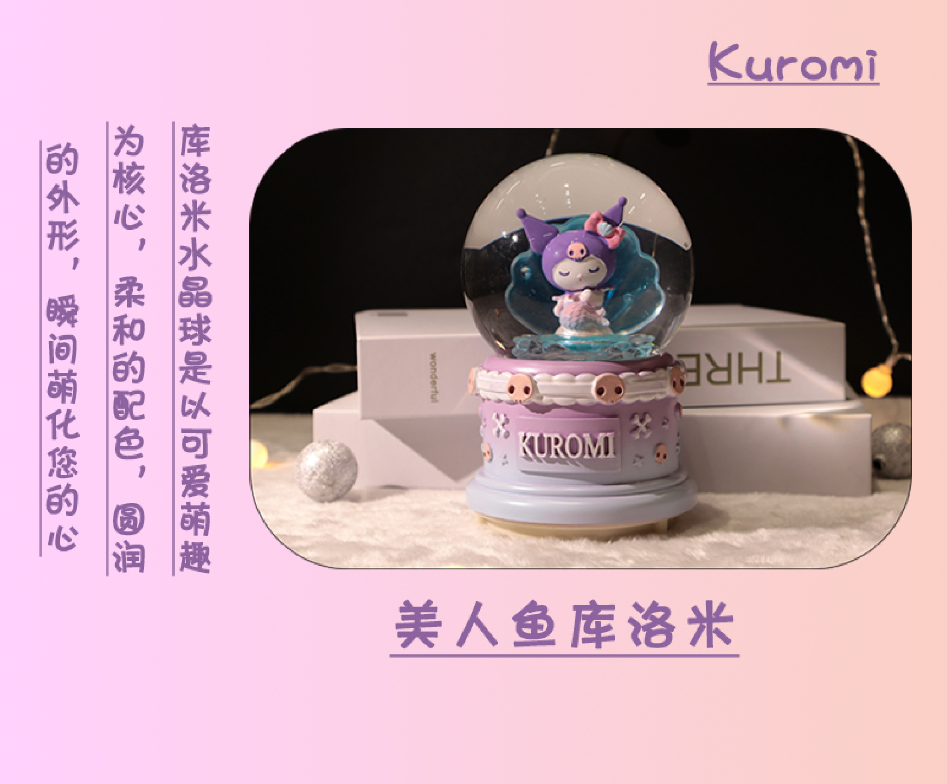 库洛米大号水晶球音乐盒厂家直销 卧室音乐灯光氛围装饰品摆件