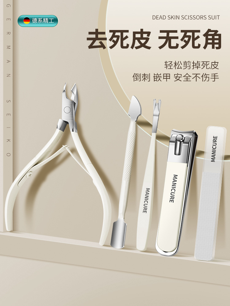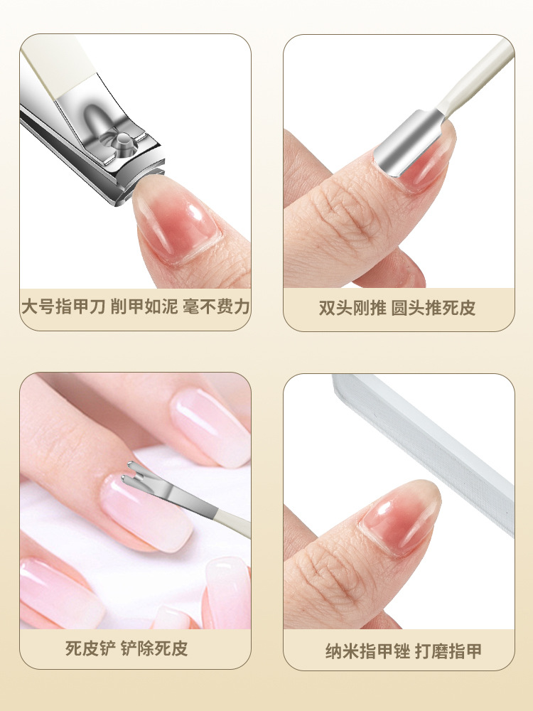 跨境不锈钢修甲去死皮美甲工具全套专业便携式钢推挫指甲剪套装