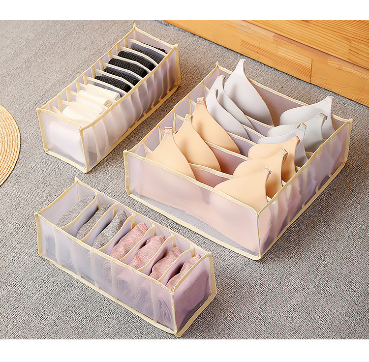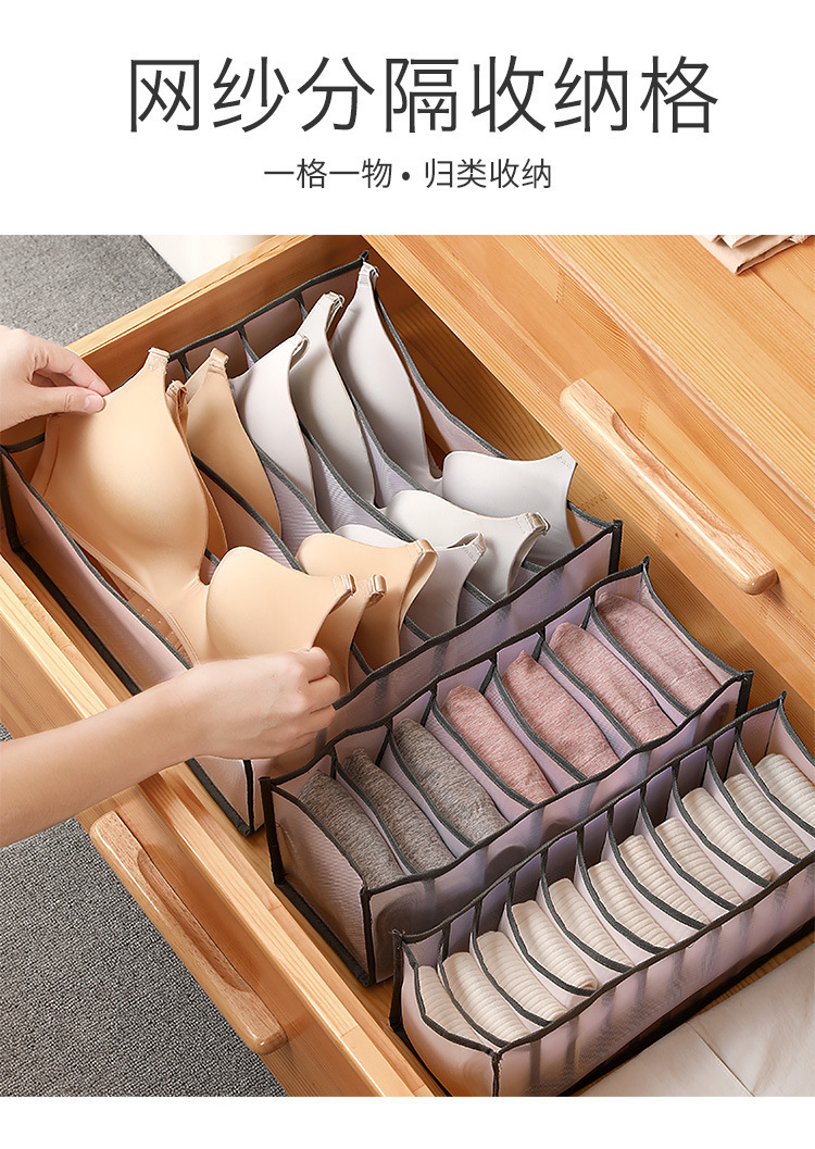 跨境衣柜抽屉收纳神器网纱分格内衣收纳盒整理盒袜子内裤多格收纳