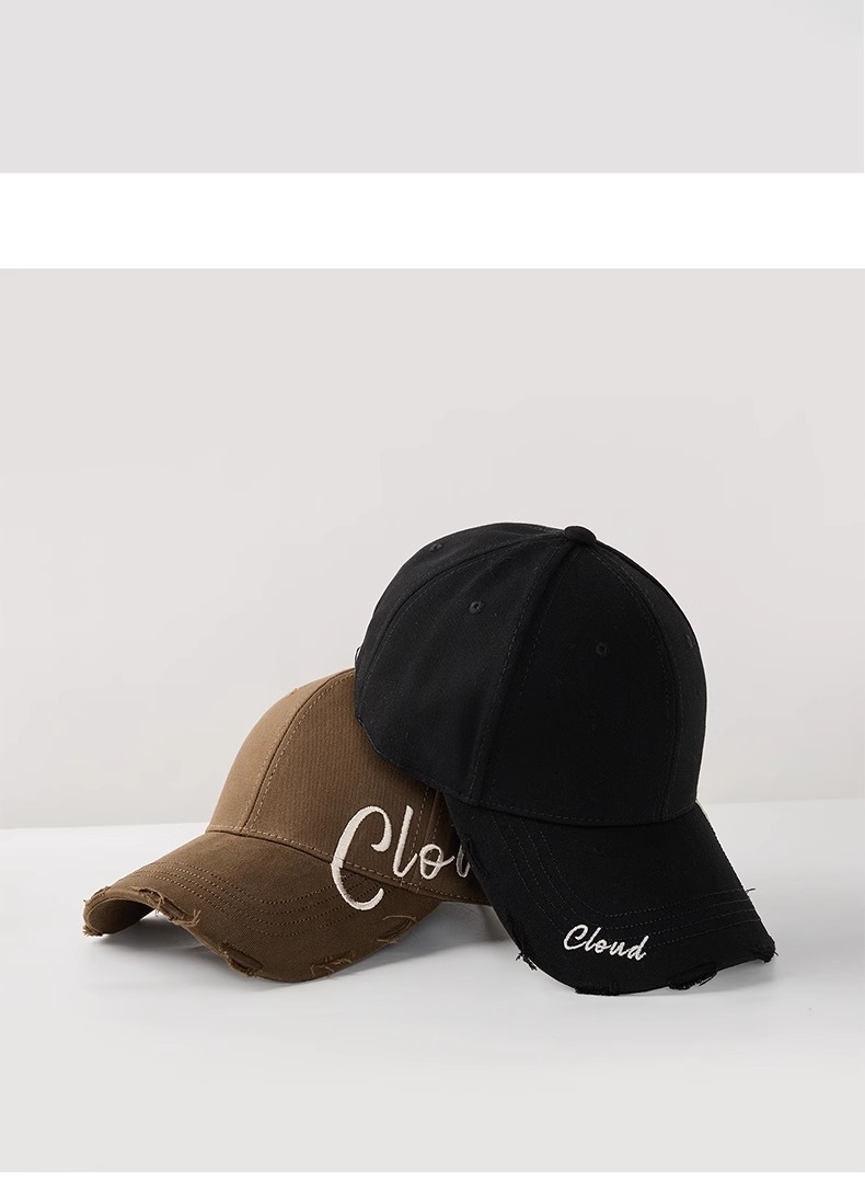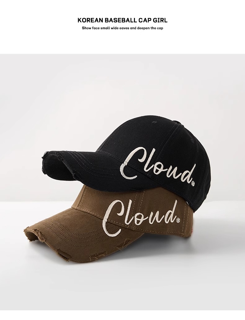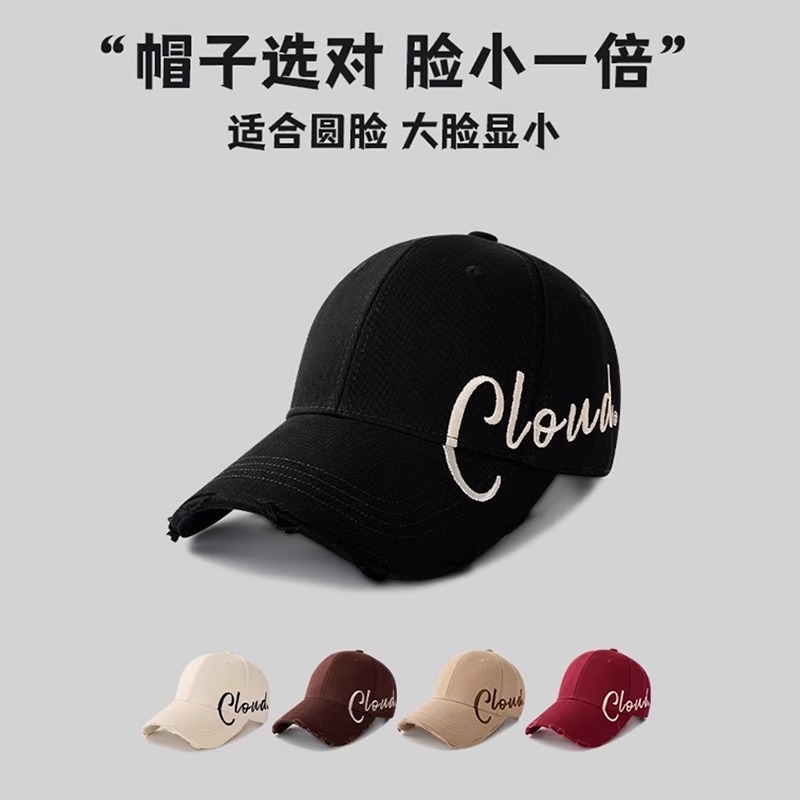 2025 新しいスタイルの破れた野球帽、文字刺繍入りひさしキャップ、顔が見える小さな広げたつばのカップル用ソフトトップカジュアルハット