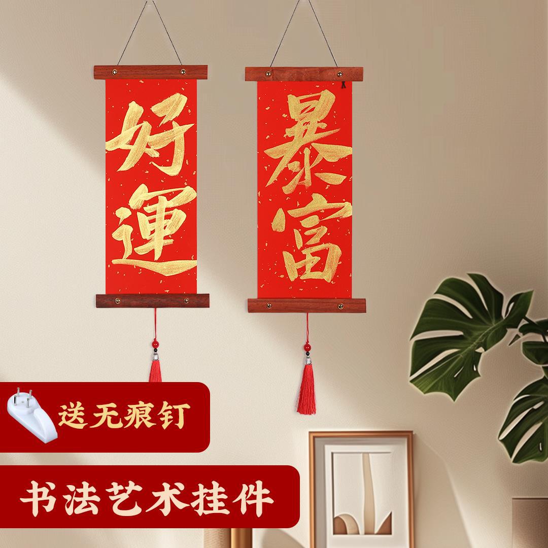 2026年宣紙吊り下げ飾り書道作品紙、玄関ホール用福字手書き吊り飾り、春節用万年紅対句紙