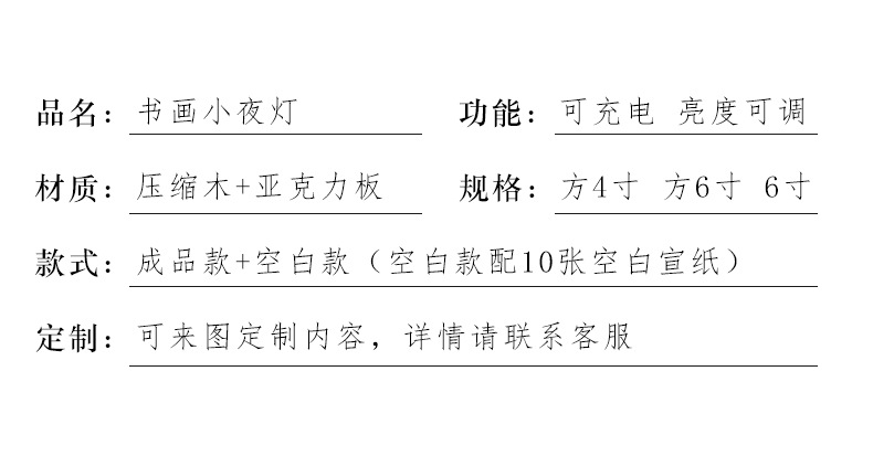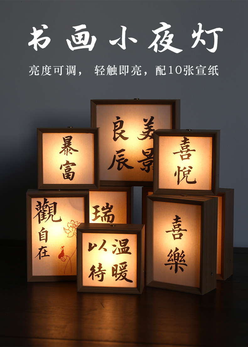 充电款书法字画框创意小夜灯DIY相框摆台卧室客厅装饰氛围灯批发