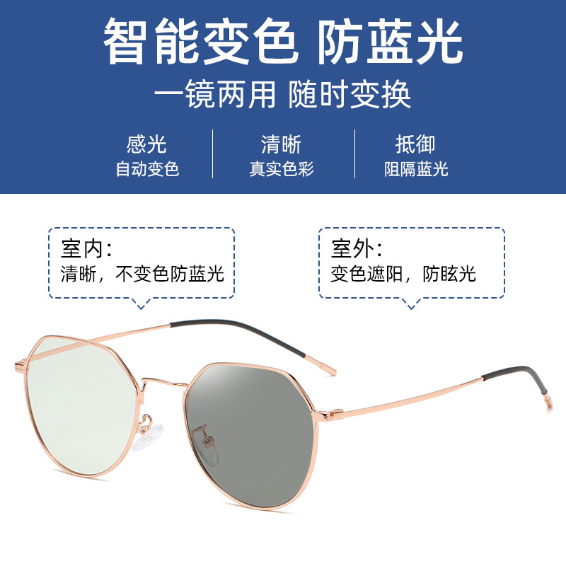 2025年新型多角形超軽量ブルーライトカットメタルコンピューターメガネ、調光機能付き、近視用メガネフレームと併用可能