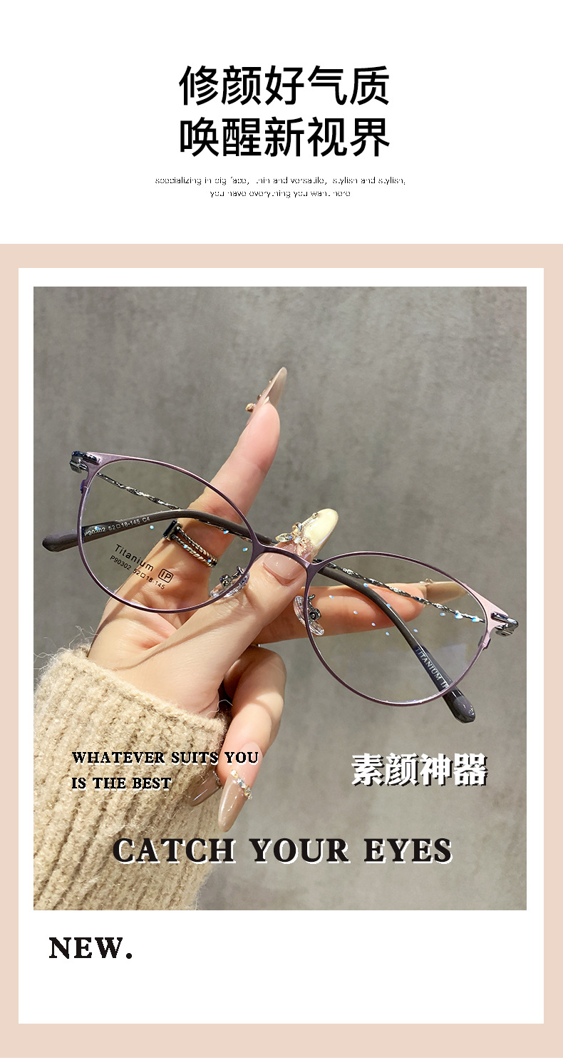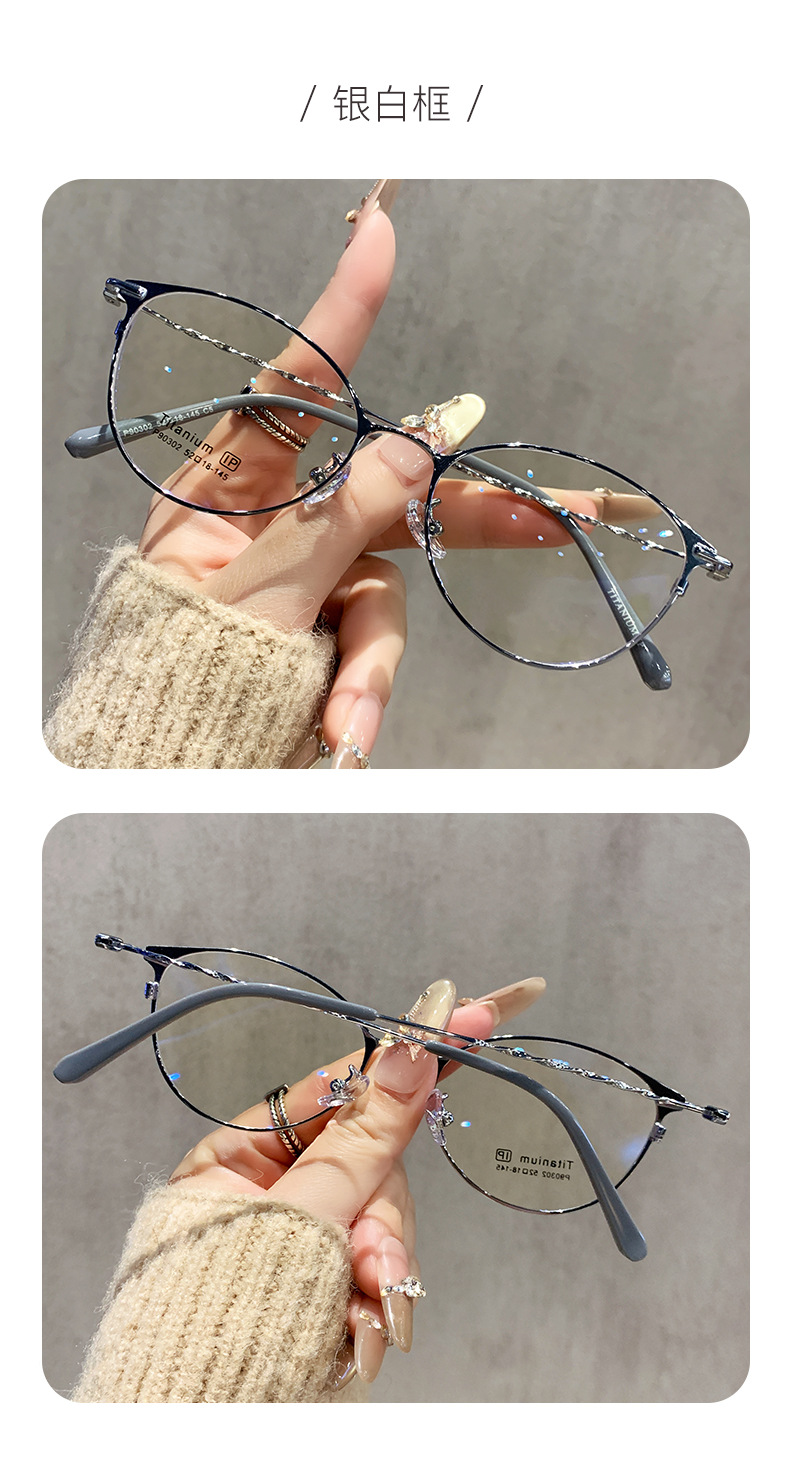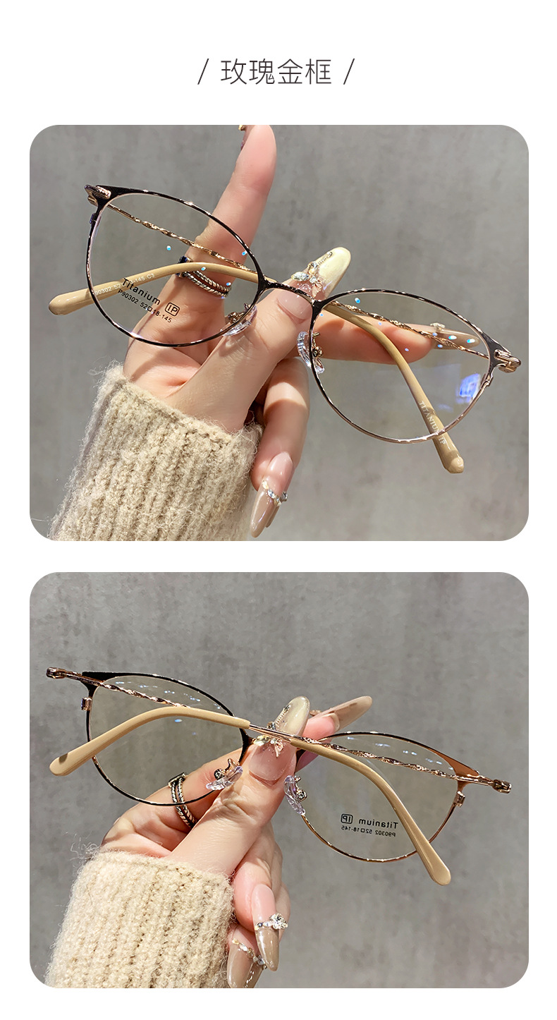 超軽量純チタン眼鏡フレーム女性高級感周囲顔丹陽鏡フレームに鏡をつけた専門近視眼鏡は度数を合わせることができる